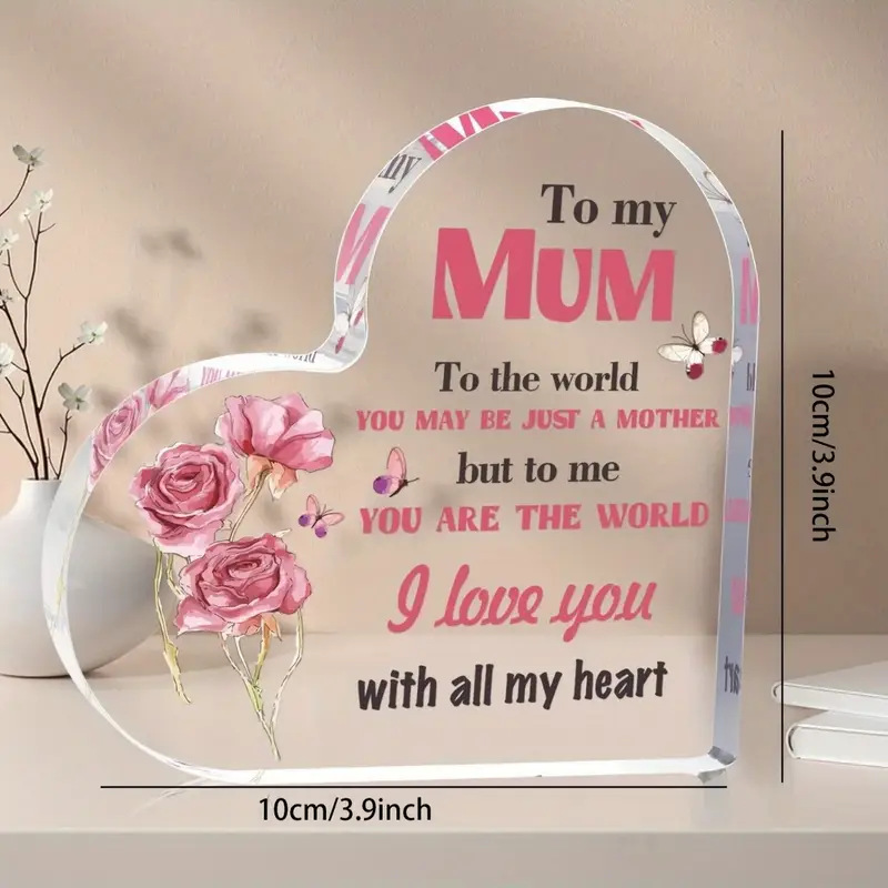 어머니의 하트 모양 아크릴 장식 로고와 명판, 어머니날 선물로 적합한 탁상 장식품