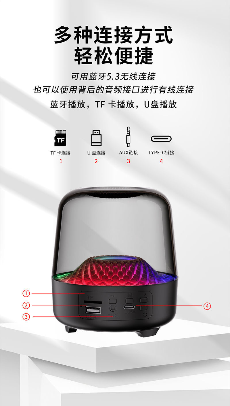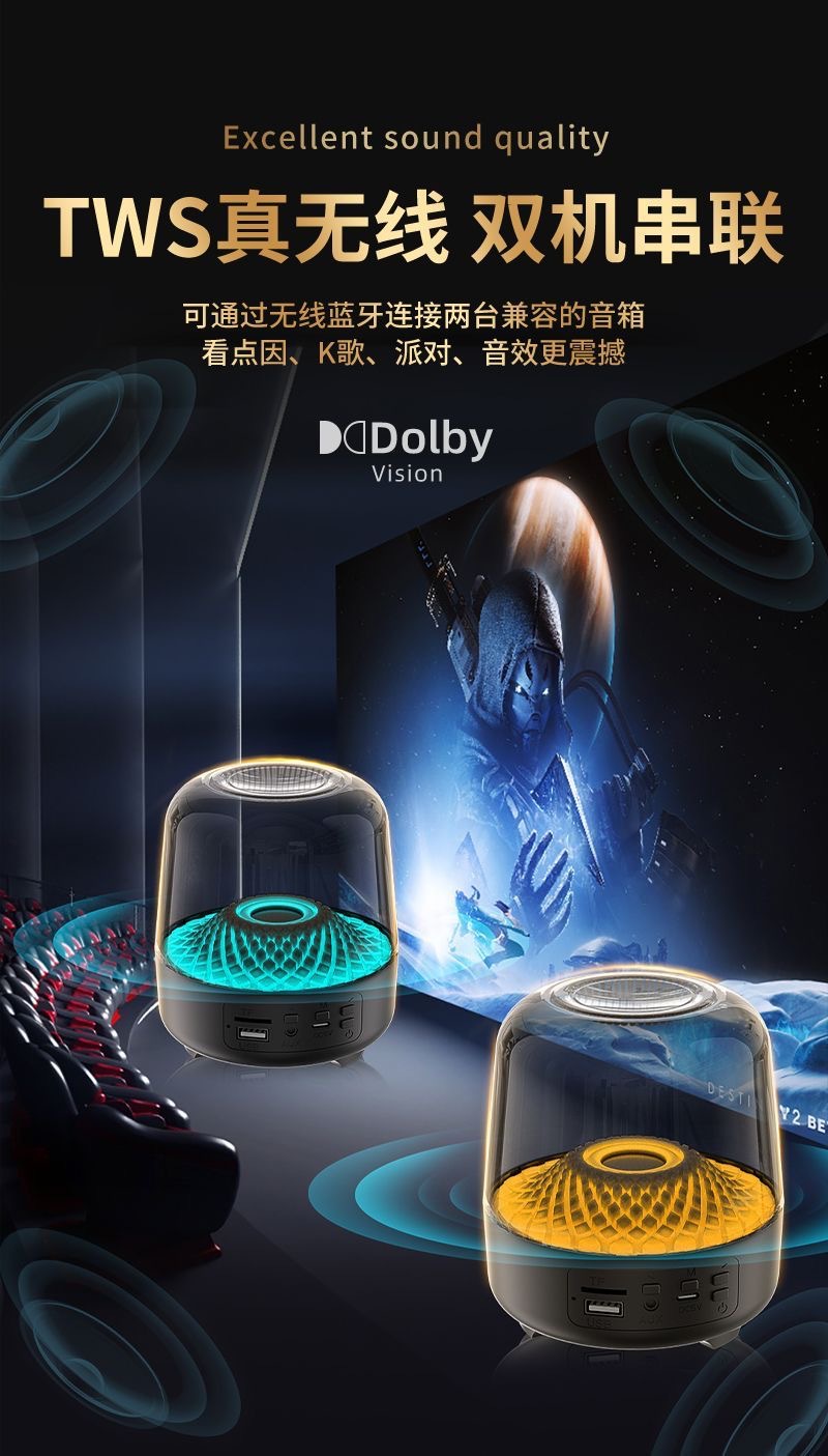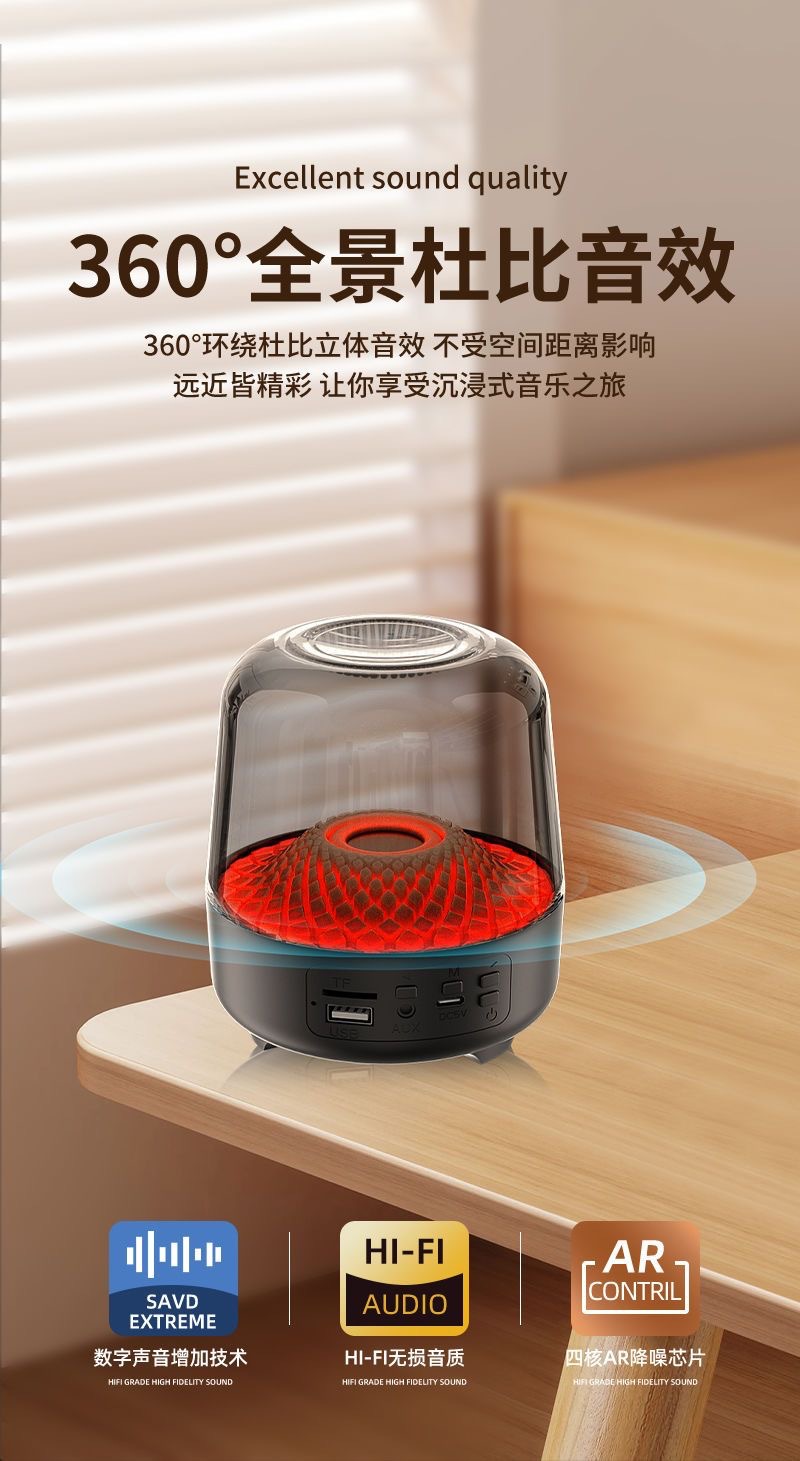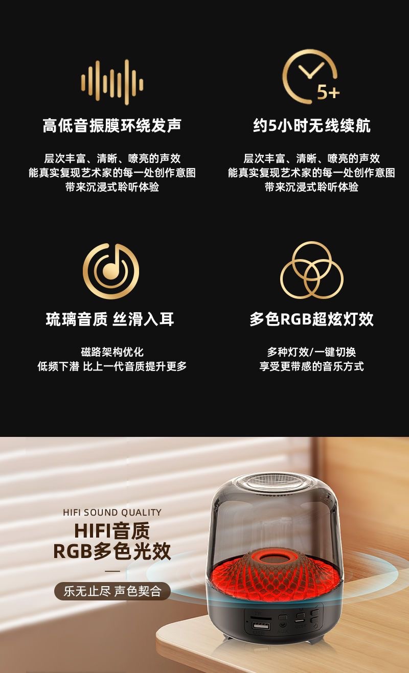 [하만음향 효과] 새로운 유리 무선 블루투스 오디오 서라운드 서브 우퍼 블루투스 스피커 베이스 서라운드