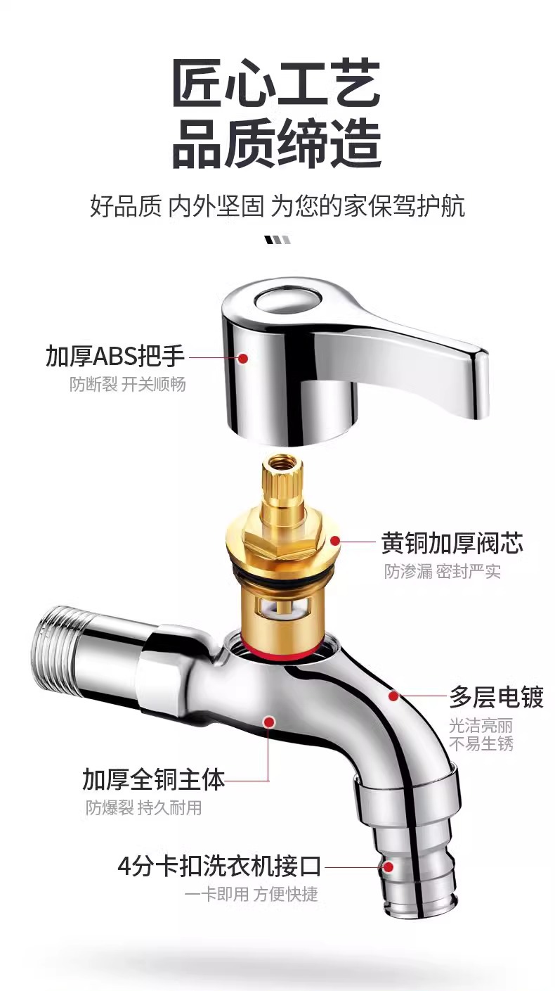 • 합금 구리 코어 구리 막대 Jiumu 핸들, 전면 및 후면 이중 개방 [세탁기 노즐 + 세탁기 노즐]