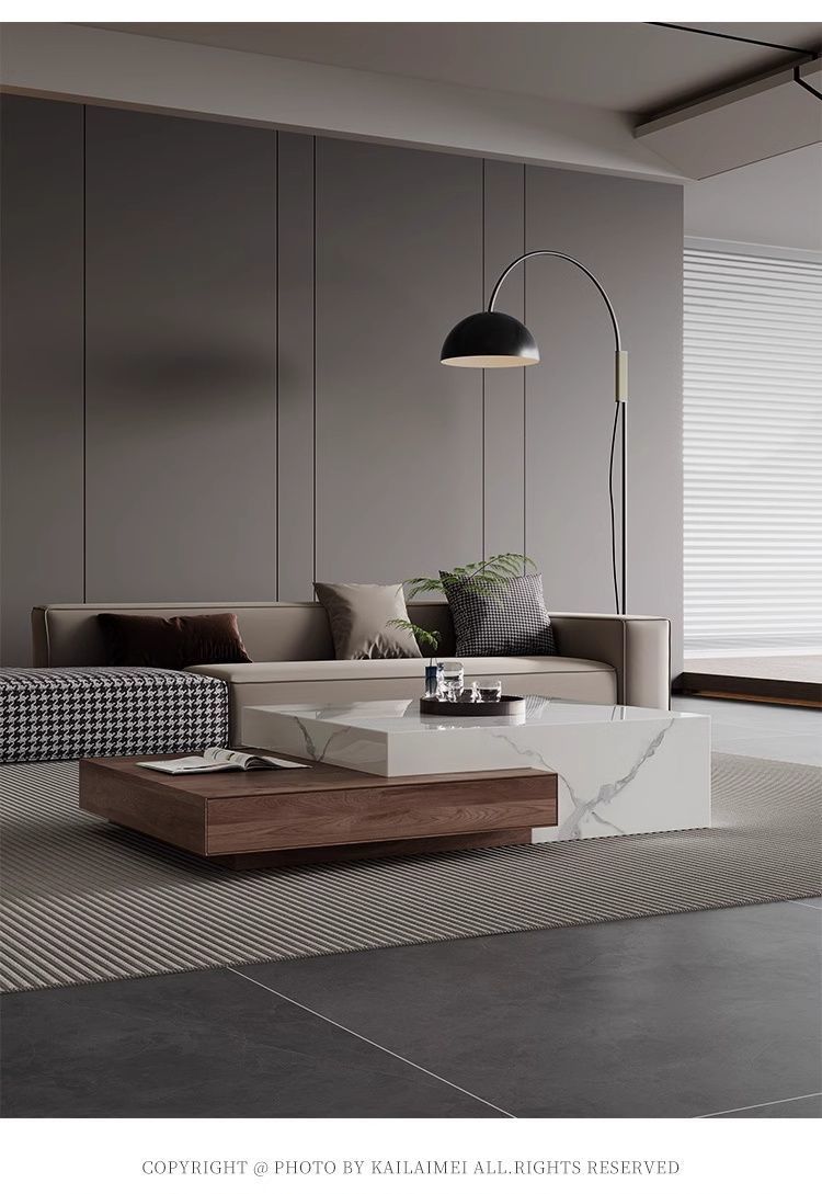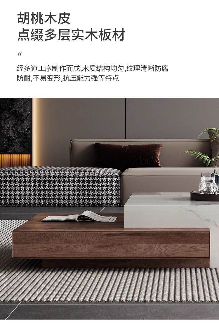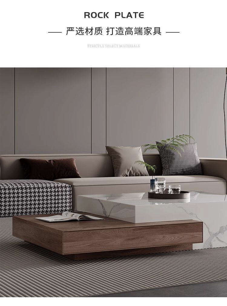모조 솔리드 우드 이탈리아 모던 라이트 럭셔리 스퀘어 커피 테이블 하이 엔드 작은 아파트 거실 간단한 텔레스코픽 홈 콤비네이션 미니멀리스트