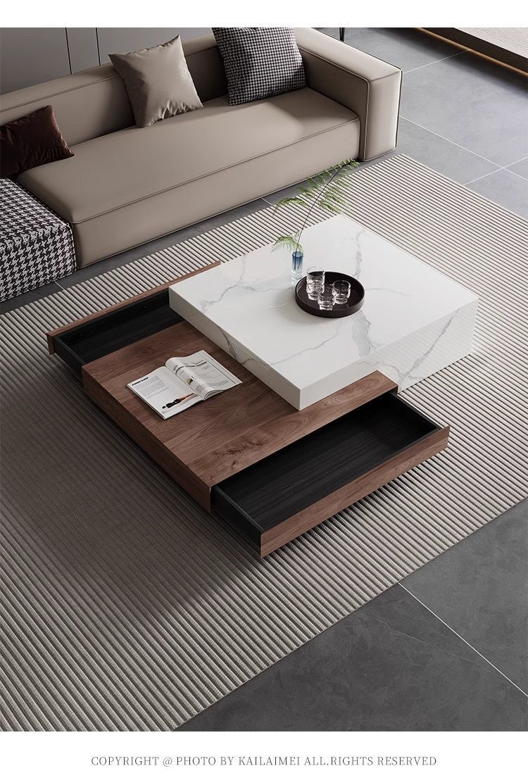 모조 솔리드 우드 이탈리아 모던 라이트 럭셔리 스퀘어 커피 테이블 하이 엔드 작은 아파트 거실 간단한 텔레스코픽 홈 콤비네이션 미니멀리스트스토어 가기
