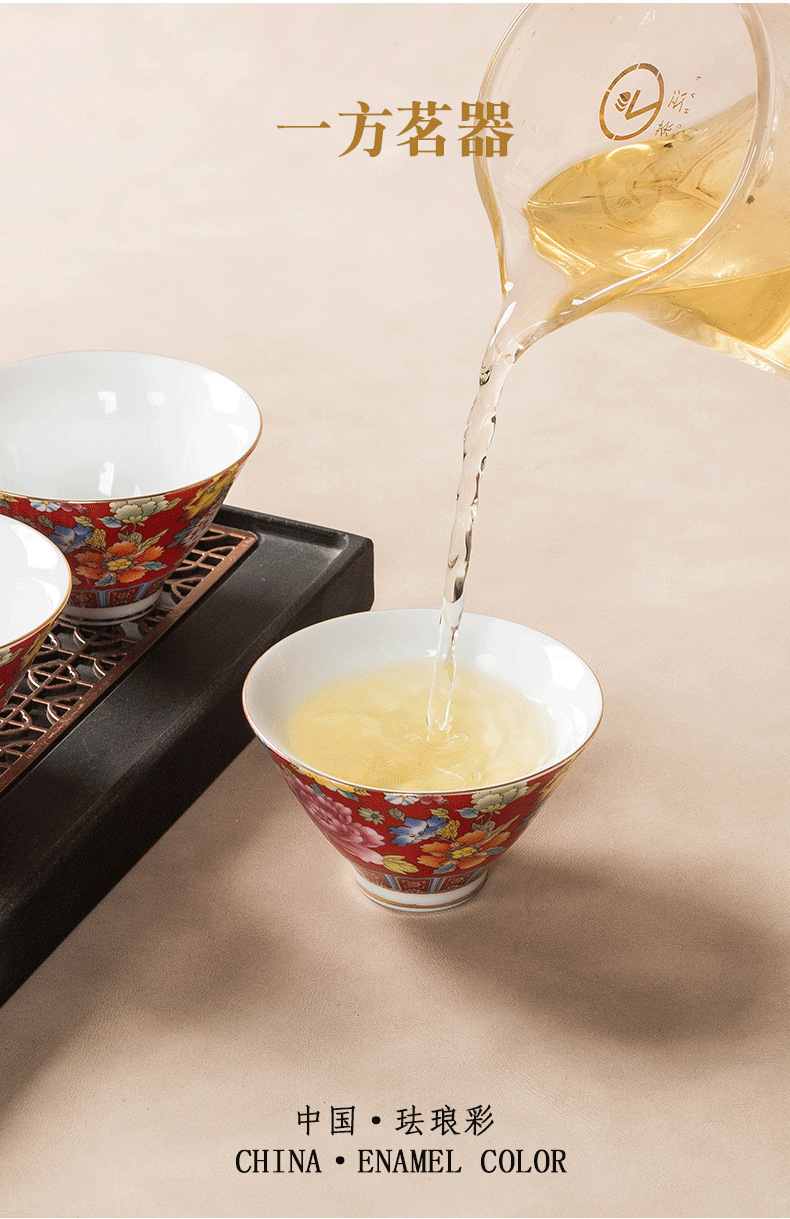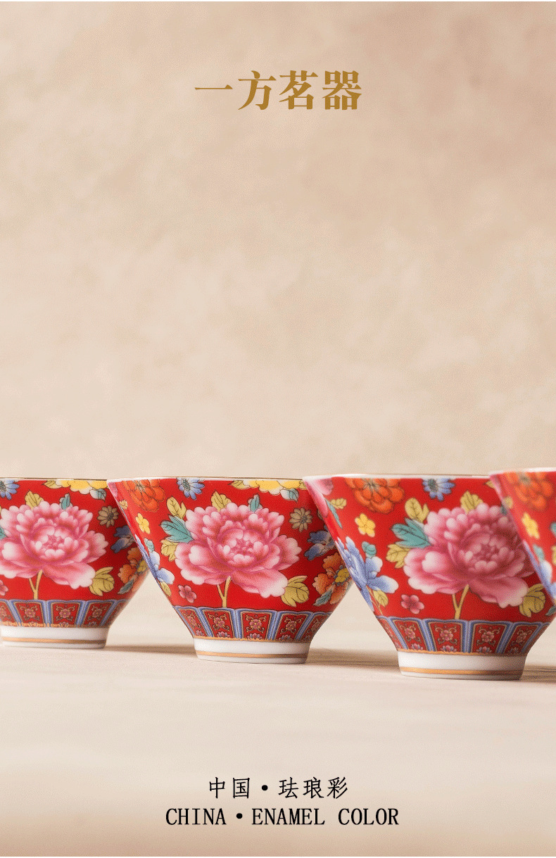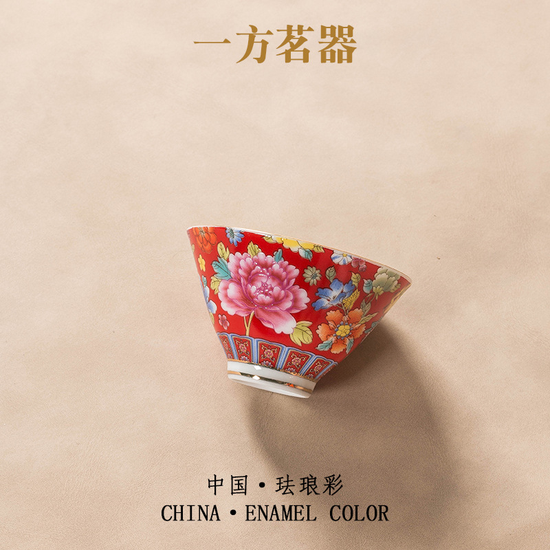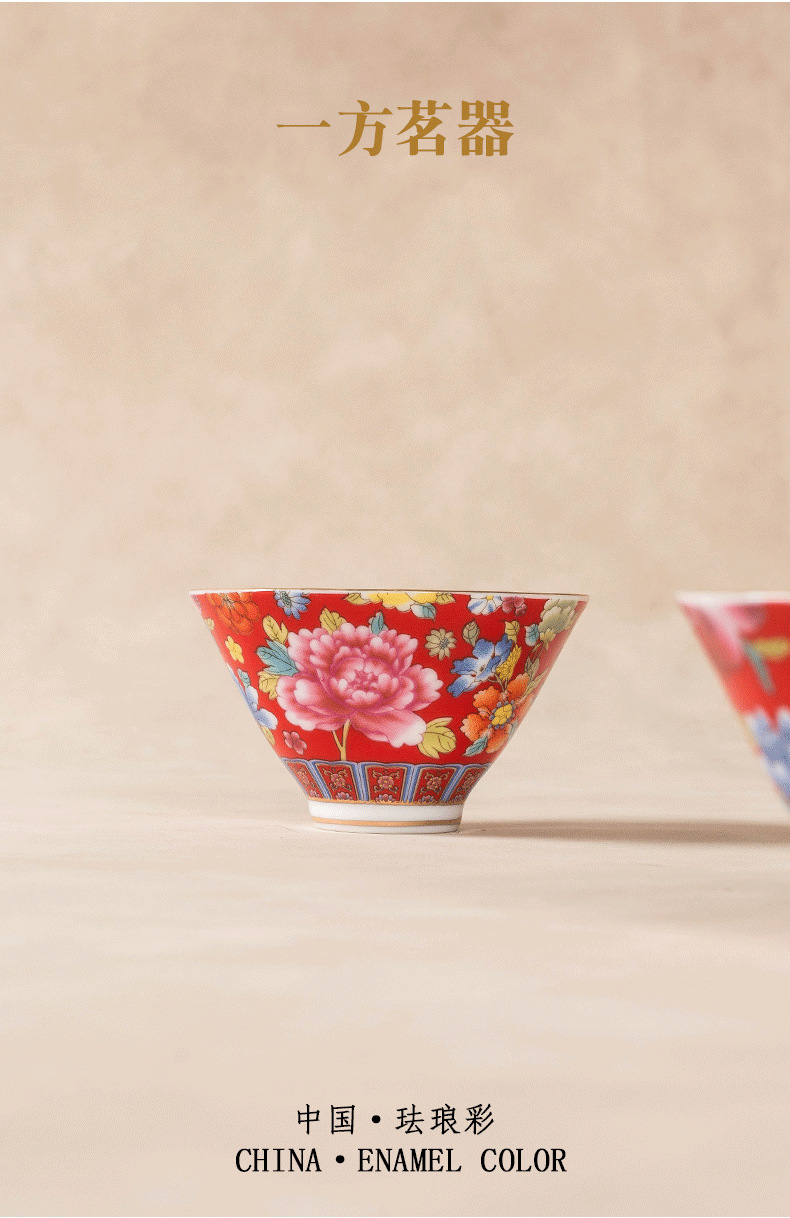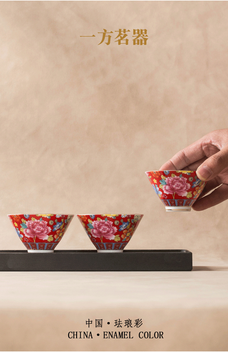에나멜 컬러 티 컵 레드 티 시음 컵 세라믹 싱글 컵 코트 스타일 쿵푸 티 세트 천 꽃 핀키 컬러 빈티지 보검 컵스토어 가기