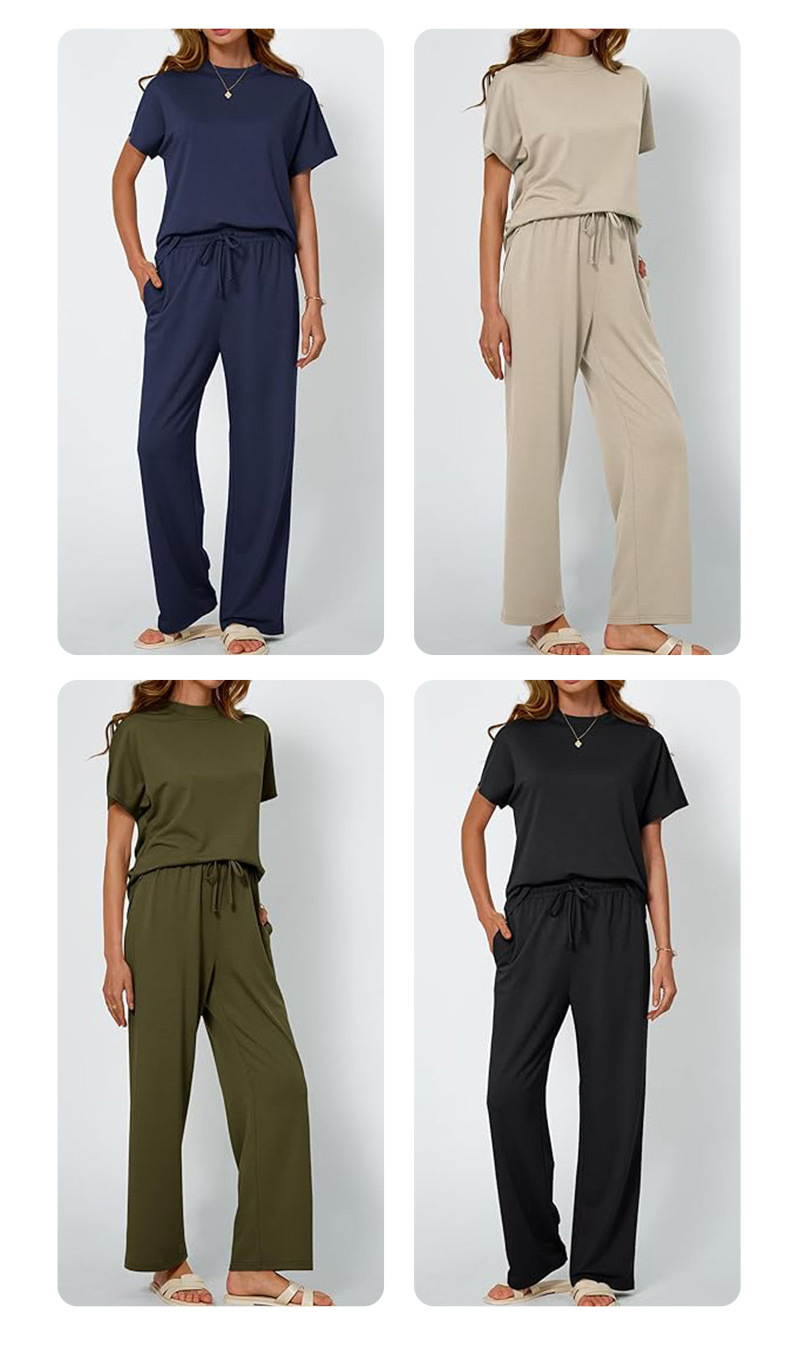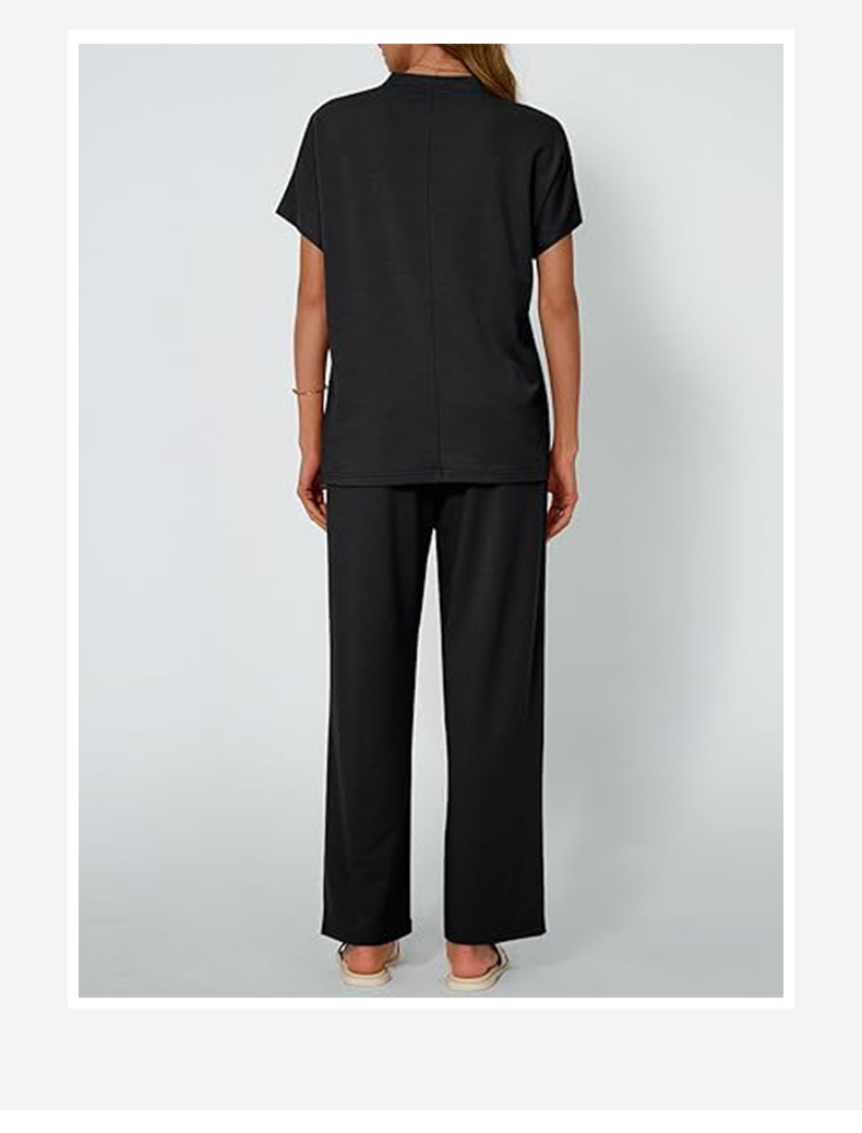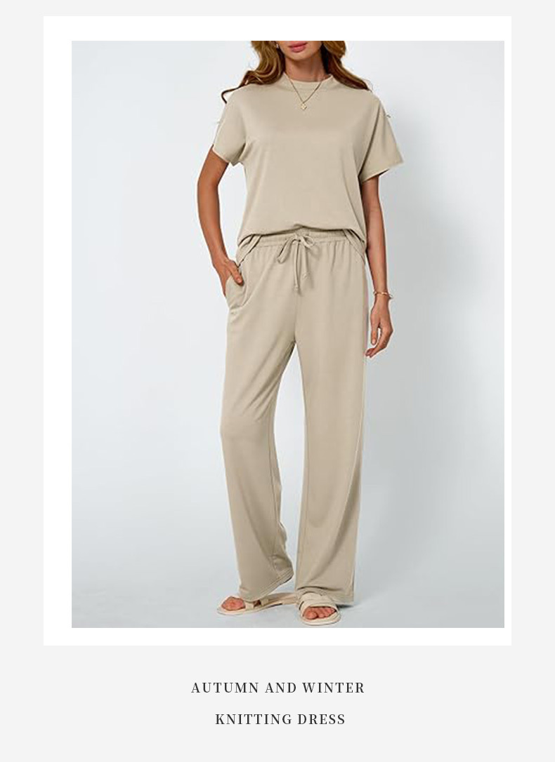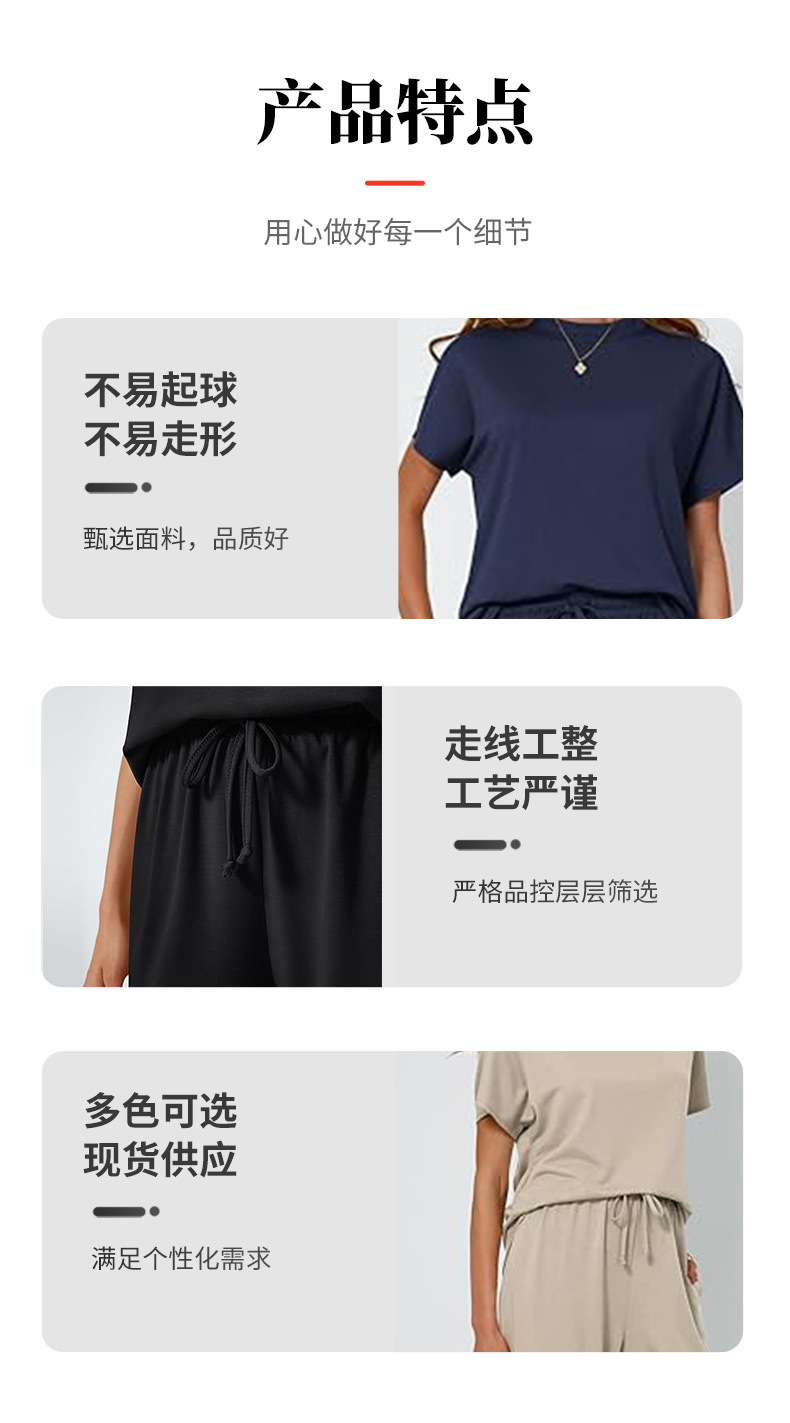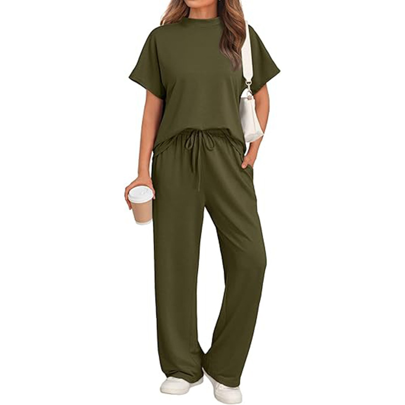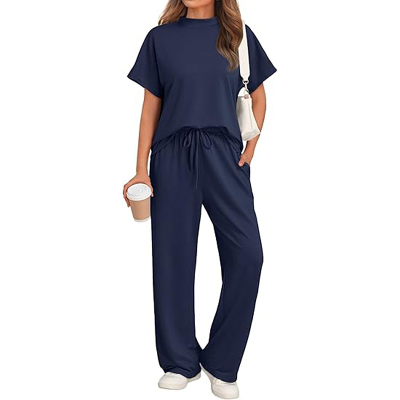 패션 캐주얼 유럽과 미국의 그레이 라운드 넥 반팔 티셔츠 레이스 업 와이드 레그 바지 느슨한 편안한 러닝 스포츠 세트