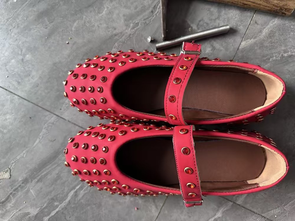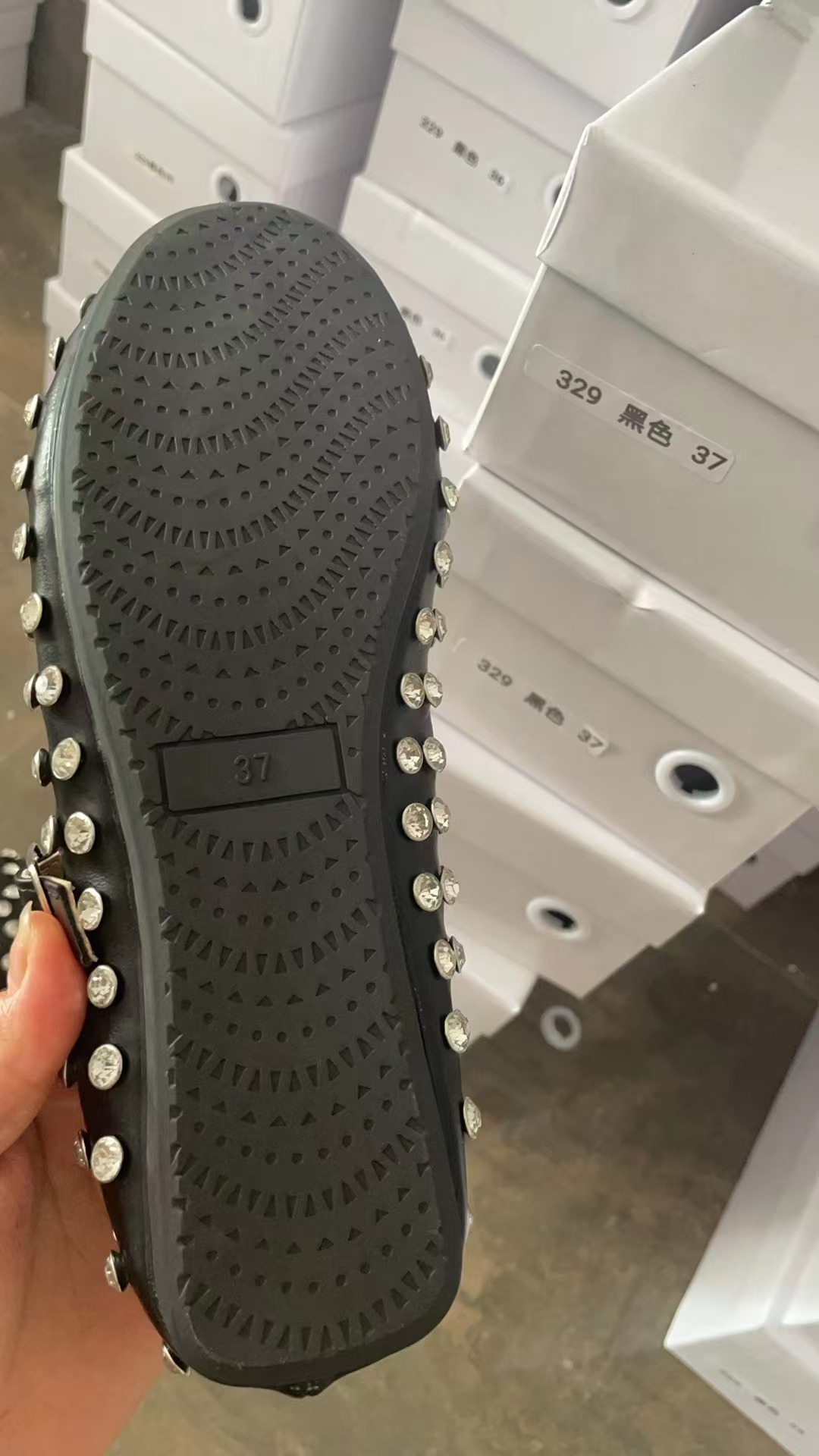 유럽과 미국의 라인스톤 플러스 사이즈 라인스톤 리벳 싱글 슈즈 풀 다이아몬드 벨트 버클 라운드 헤드 플랫 편안한 패션 여성 싱글 슈즈스토어 가기