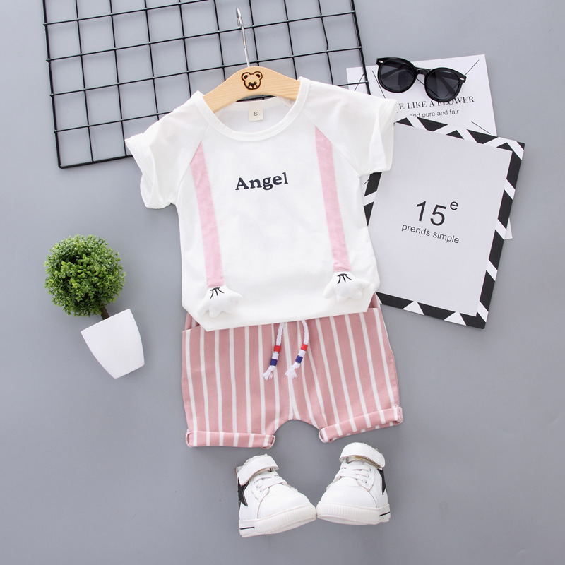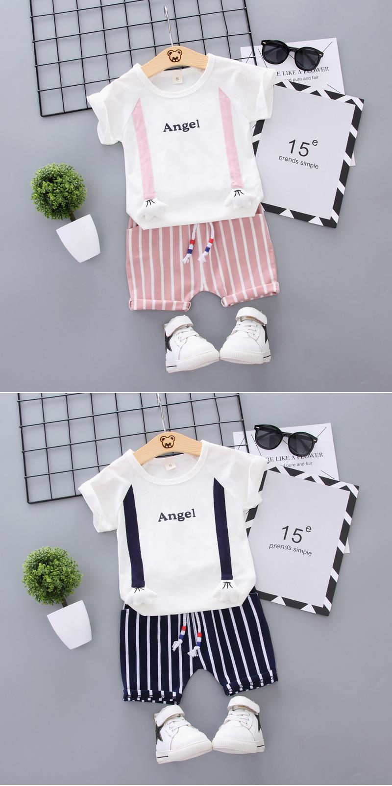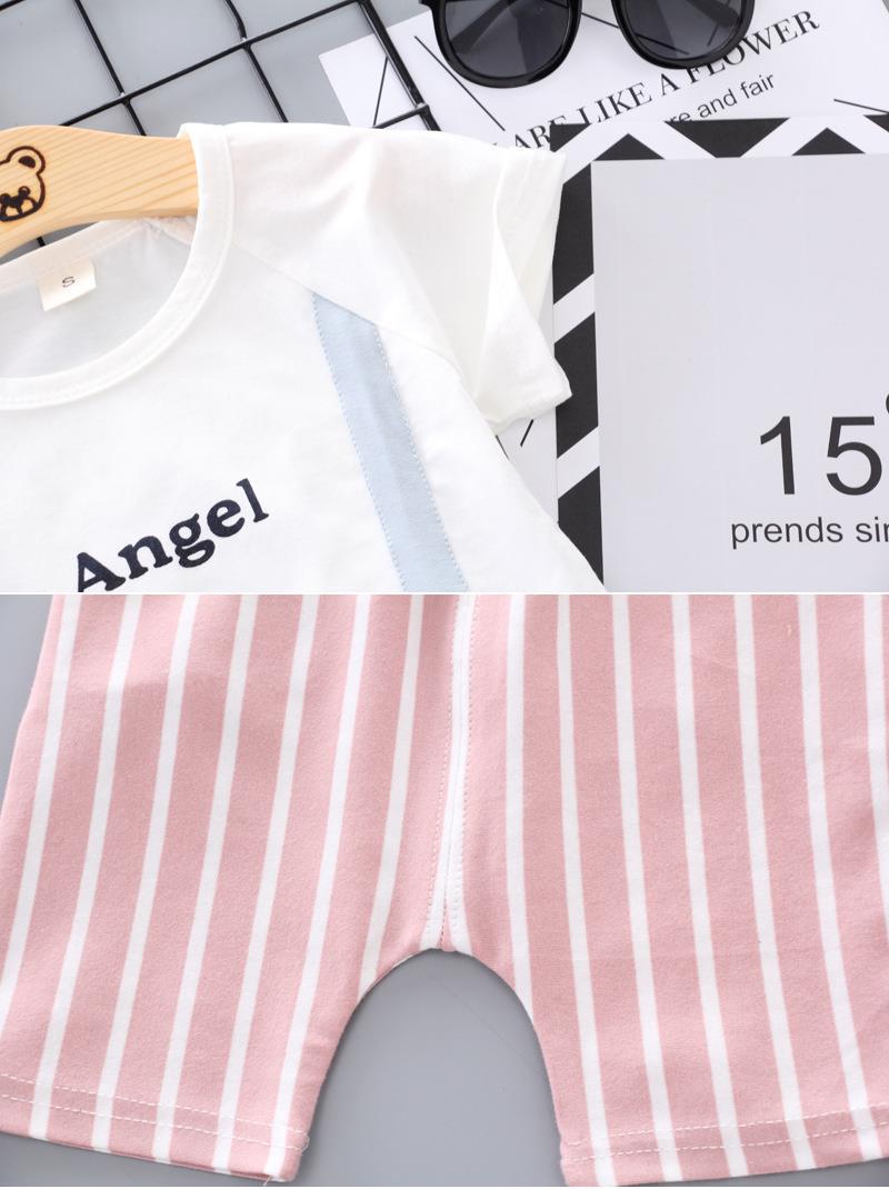 국경 간 대외 무역 1234 년 된 여름 아동복 아기 반팔 투피스 소년 소녀 여름 서양식 면화 어린이 세트 세트