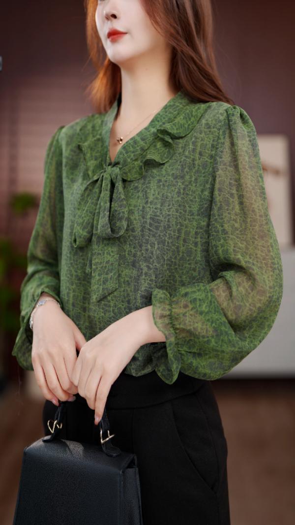 2025 봄 새로운 도착 셔츠 여성 패션 인쇄 쉬폰 셔츠 세련된 우아한 줄무늬 스트리밍 탑 셔츠