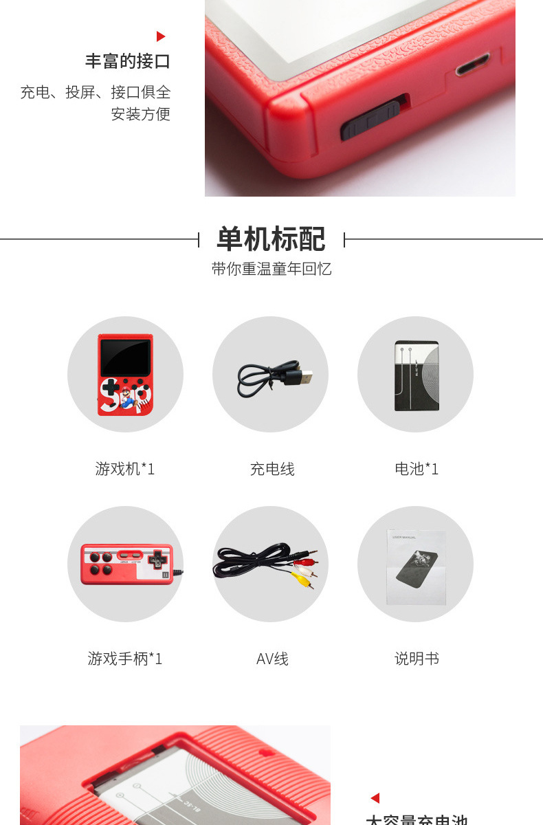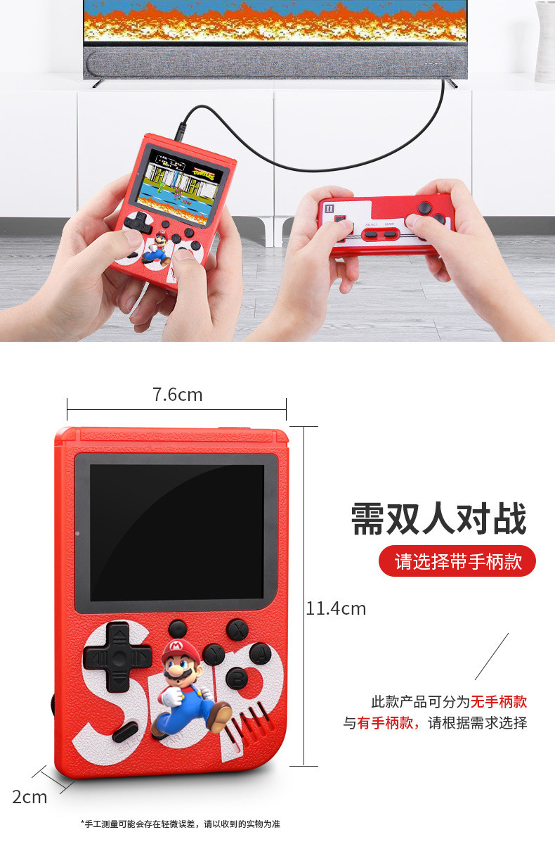 SUP 휴대용 게임기 듀얼 플레이어용 향수를 불러일으키는 레트로 클래식 FC 내장형 800가지 게임이 하나로 휴대 가능한 미니 어린이 컴퓨터