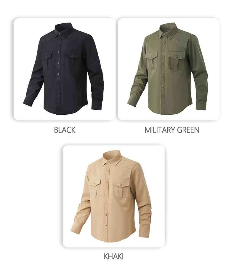국경 간 봄과 가을 대외 무역 아마존 독립 역 유럽과 미국 남성 셔츠 멀티 포켓 캐주얼 단색 긴 소매 최고 남성