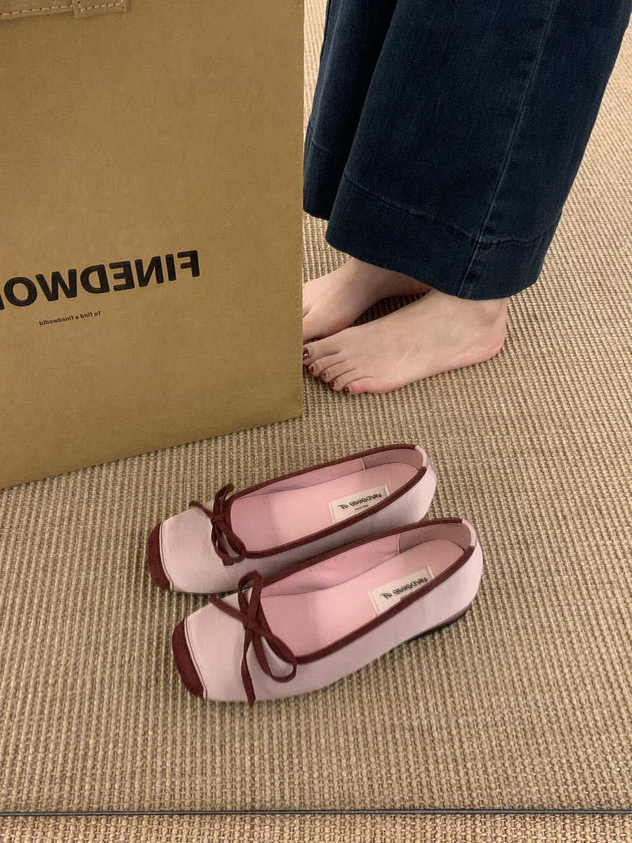 웨지 스퀘어 헤드 샤넬 스타일 핑크 신발 여성 신발 2025 새로운 봄 얕은 입 원피스 부드러운 저녁 신발스토어 가기