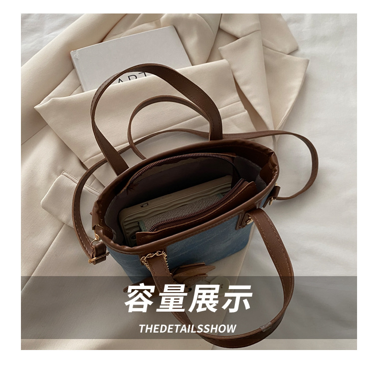 핸드백 여성 2025 새로운 스타일 신선한 어깨 가방 크로스 바디 백 패션 니치 버킷 텍스타일 캐주얼 여성용 가방스토어 가기