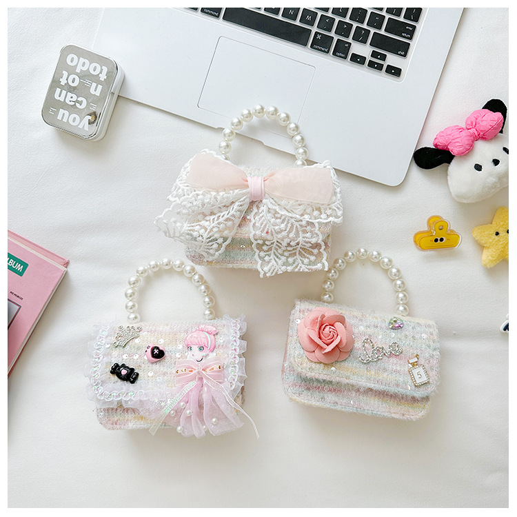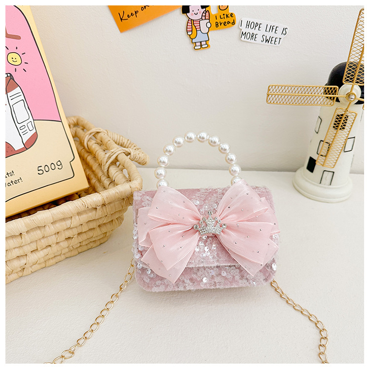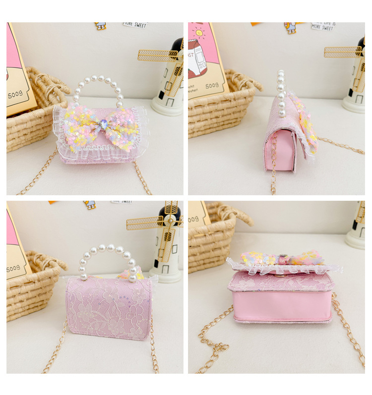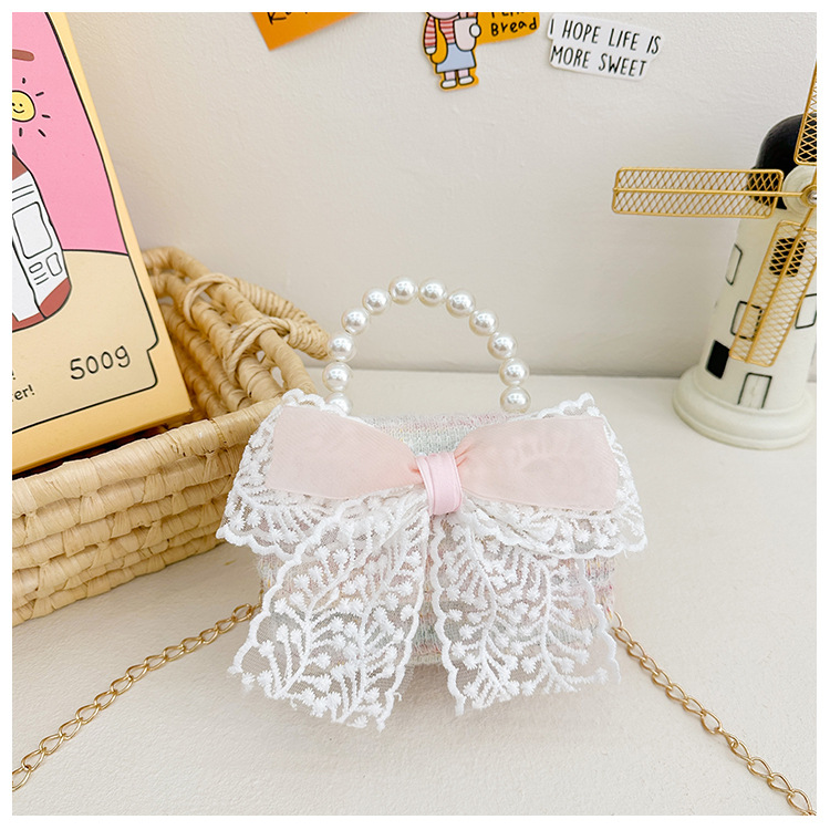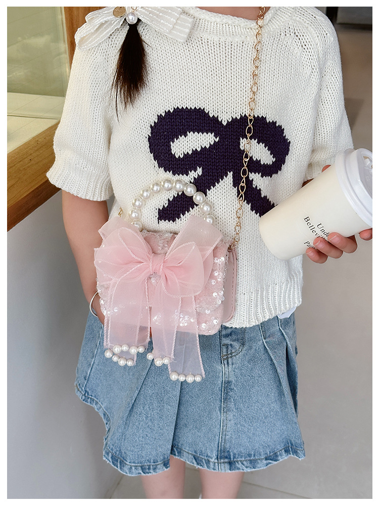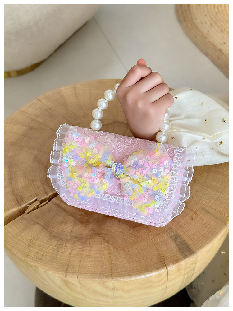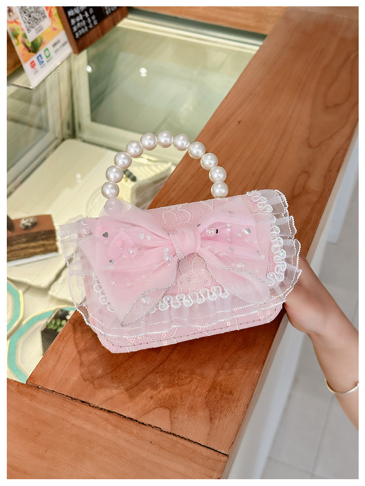 봄과 여름 새로운 어린이 가방 작은 소녀의 활 진주 핸드백 서양식 공주 어깨 크로스 바디 동전 지갑