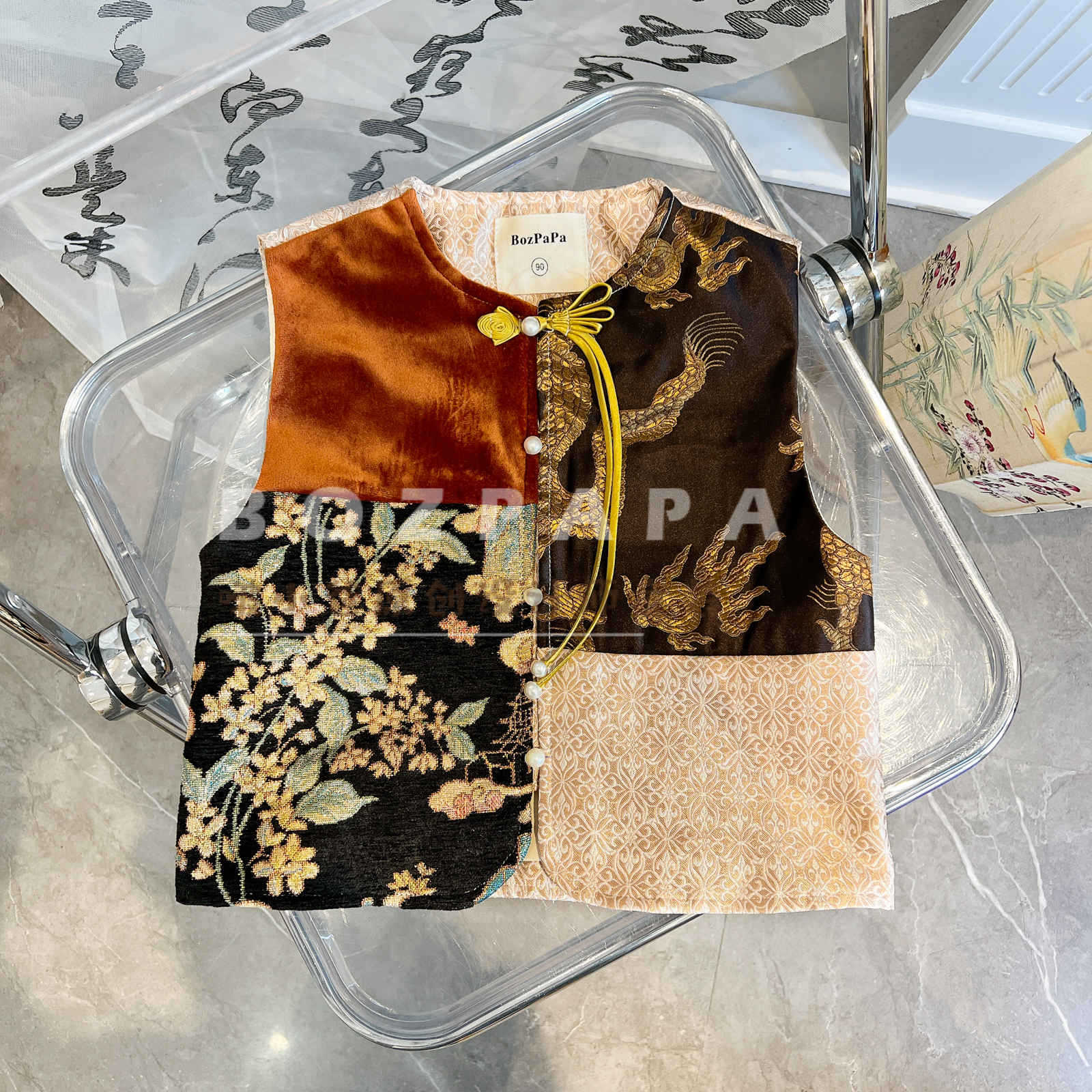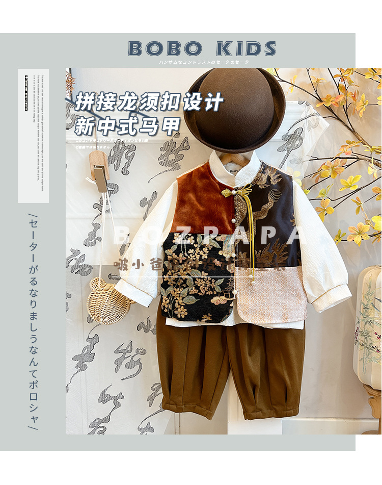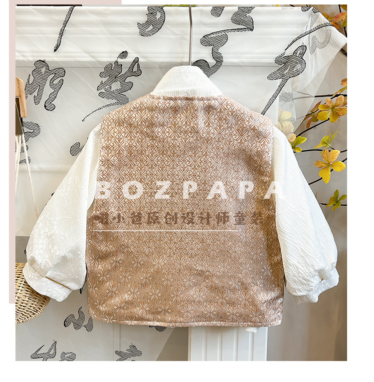 2025 봄 가을 남아 자수 스티치 용수염 단추 조끼 어린이 신중국풍 조끼 트렌디한 스타일 유아용스토어 가기