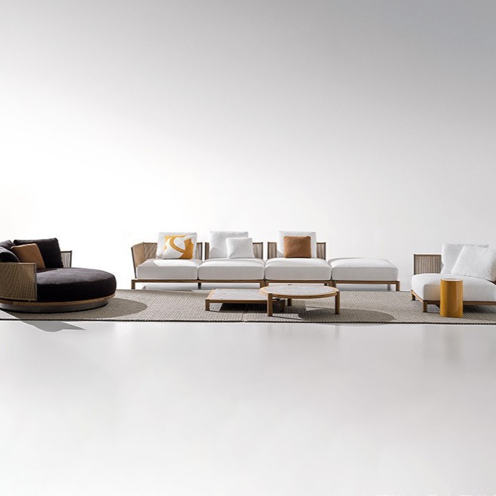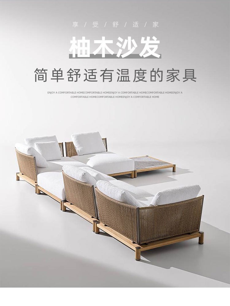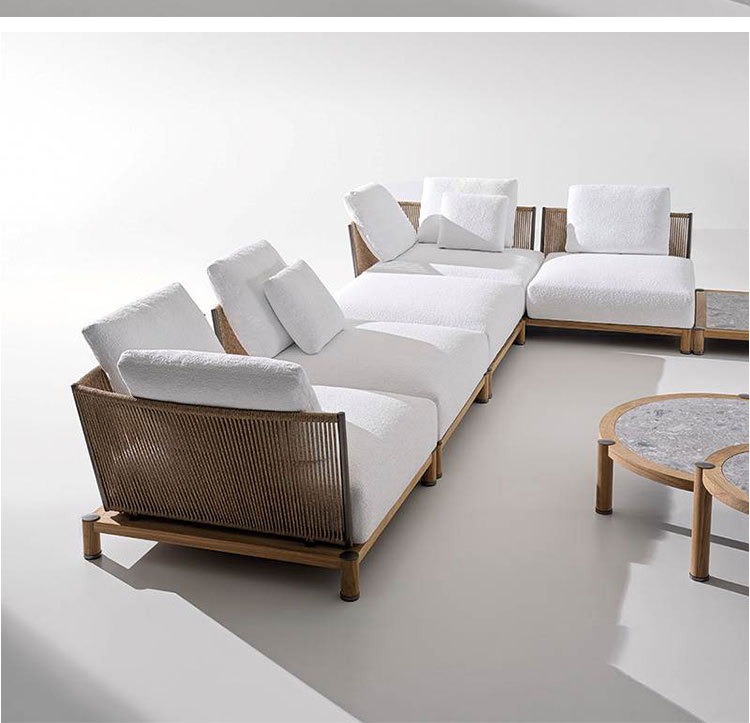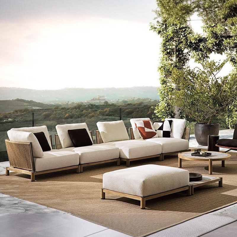 야외 티크 소파 코트야드 등나무 고급 빌라 방비 선 스크린 야외 야외 발코니 호텔 정원 가구