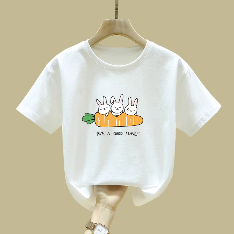 2032 # cuhk 소년 소녀 아동복 반팔 티셔츠 토끼 옷 새 여름 코트 100 면베이스스토어 가기