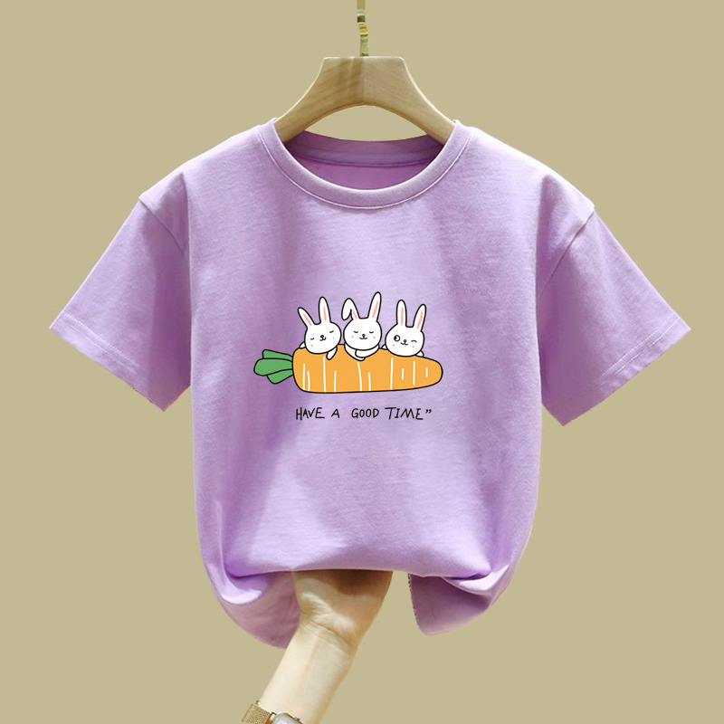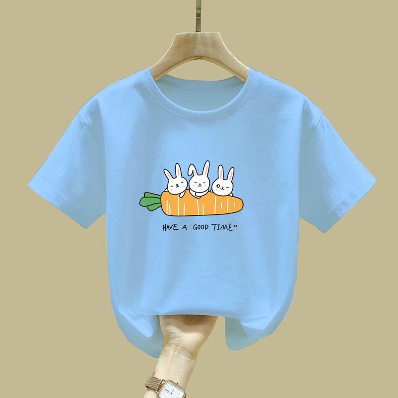 2032 # cuhk 소년 소녀 아동복 반팔 티셔츠 토끼 옷 새 여름 코트 100 면베이스