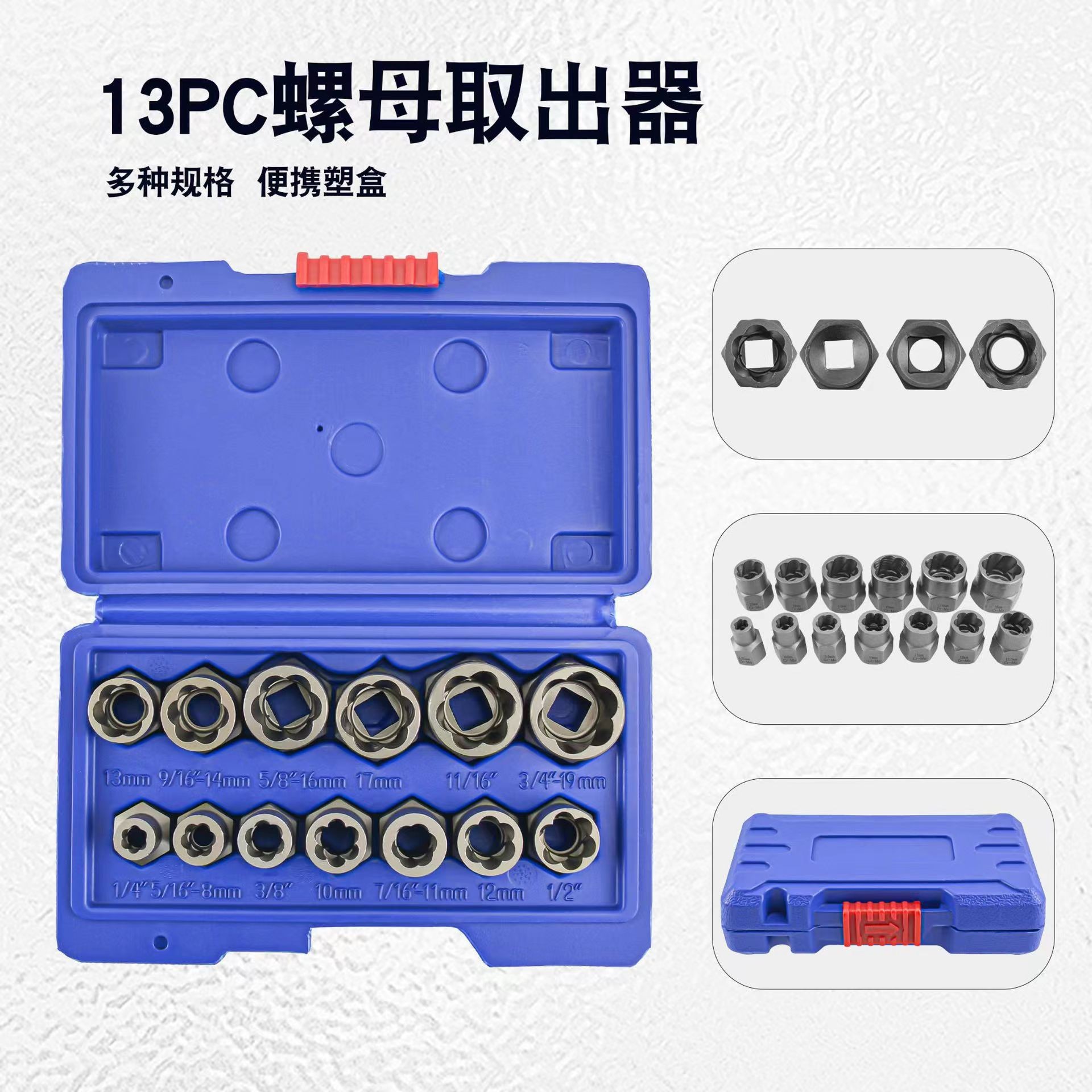 • 파란색 상자 13pc 너트 추출기 샌드블라스팅 모델