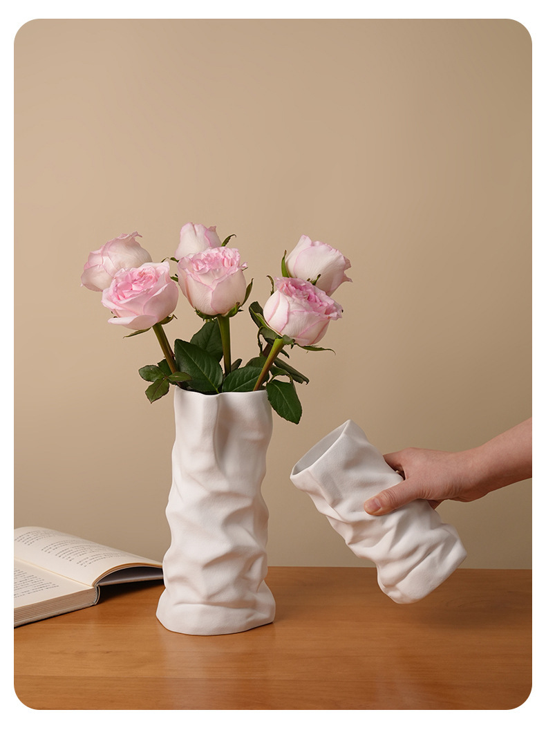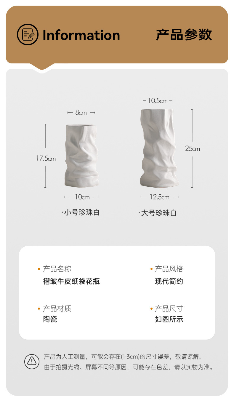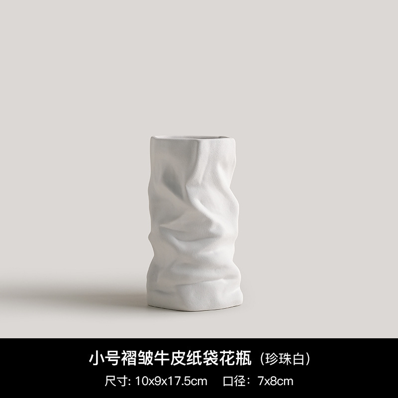 • 작은 주름 크라프트지 봉투 꽃병 (펄 화이트)