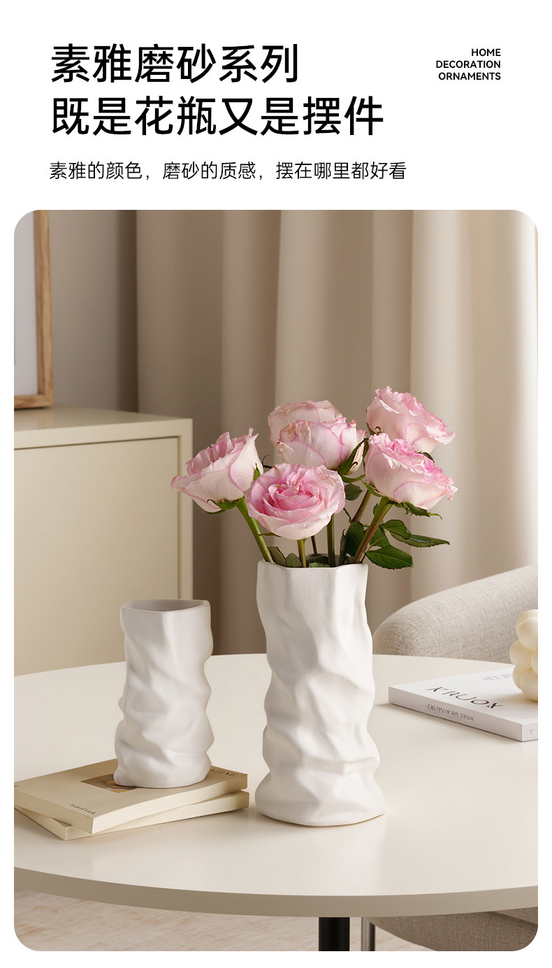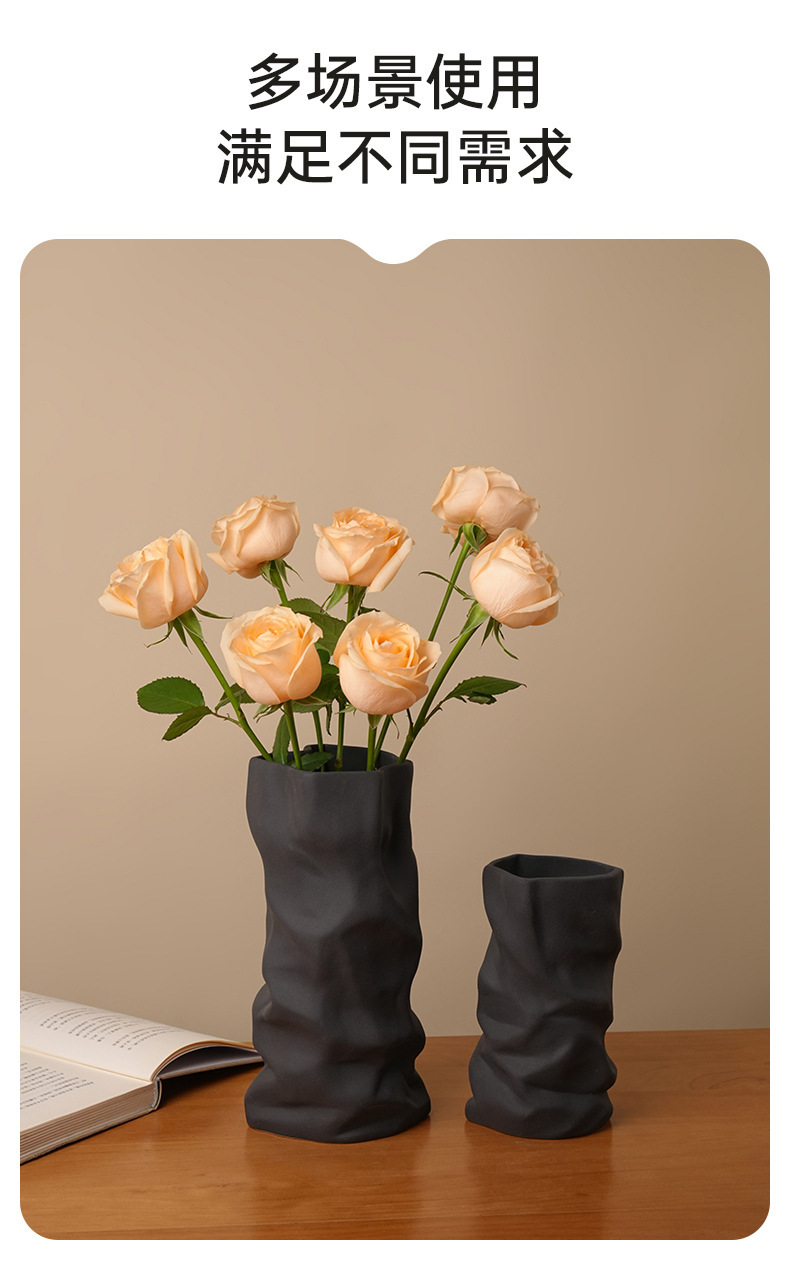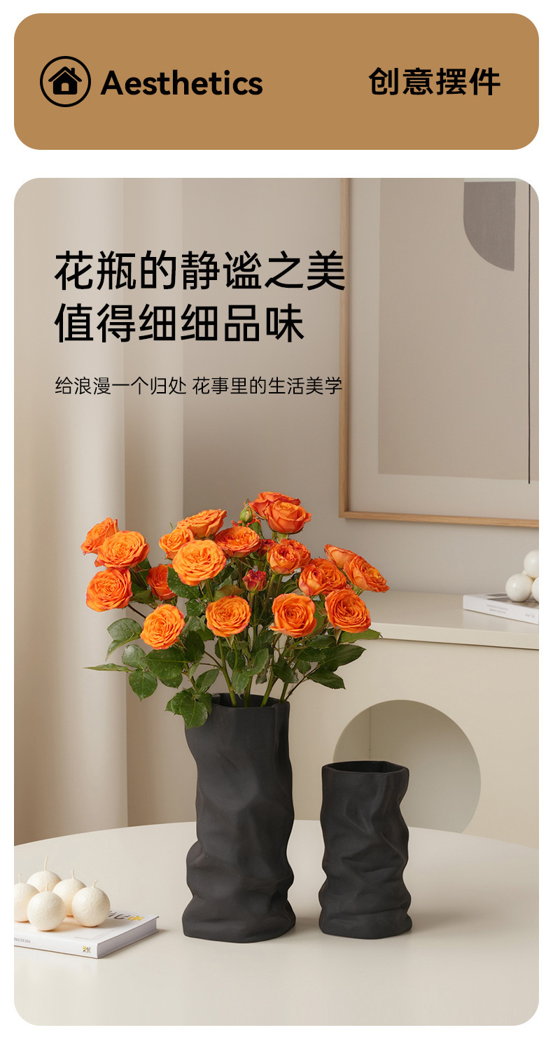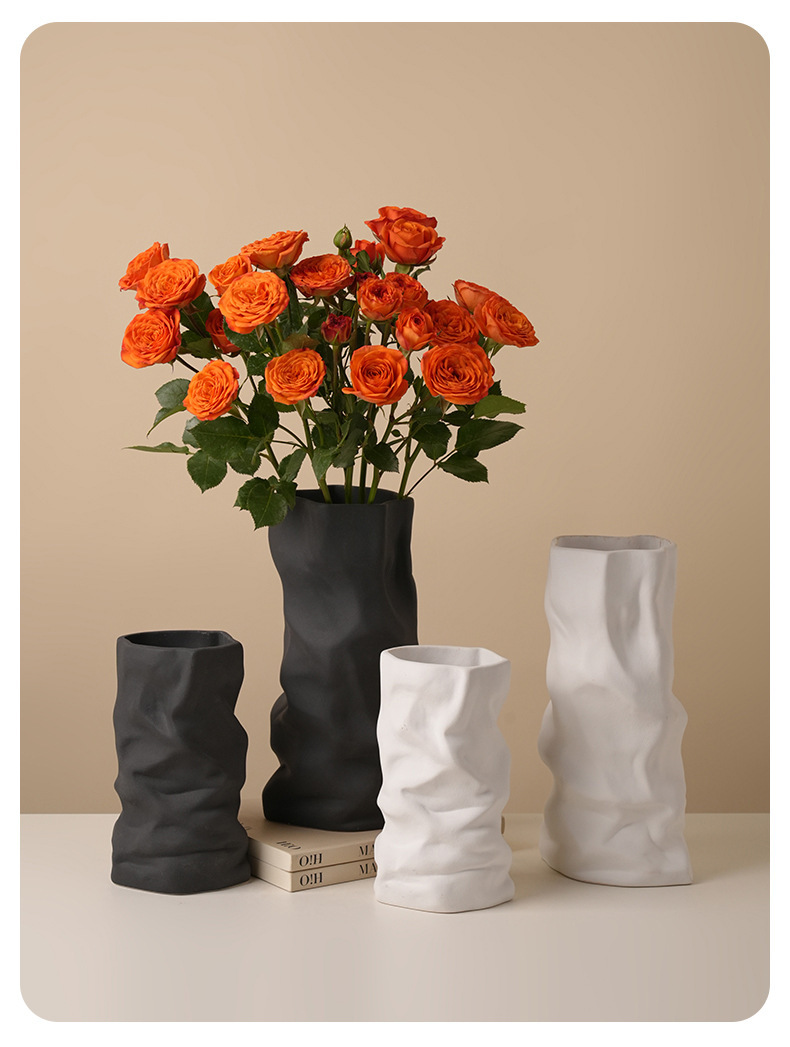 Behanmei 간단한 고급 흑백 주름 꽃병 홈 거실 바탕 화면 장식 생일 집들이 선물 장식품