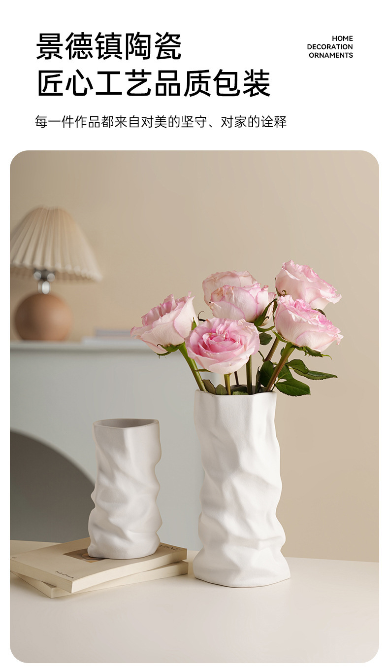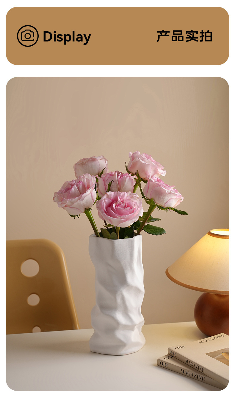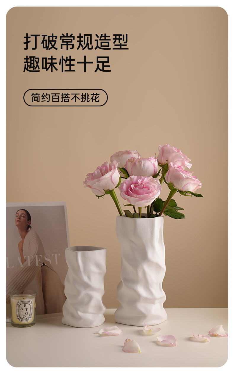 Behanmei 간단한 고급 흑백 주름 꽃병 홈 거실 바탕 화면 장식 생일 집들이 선물 장식품