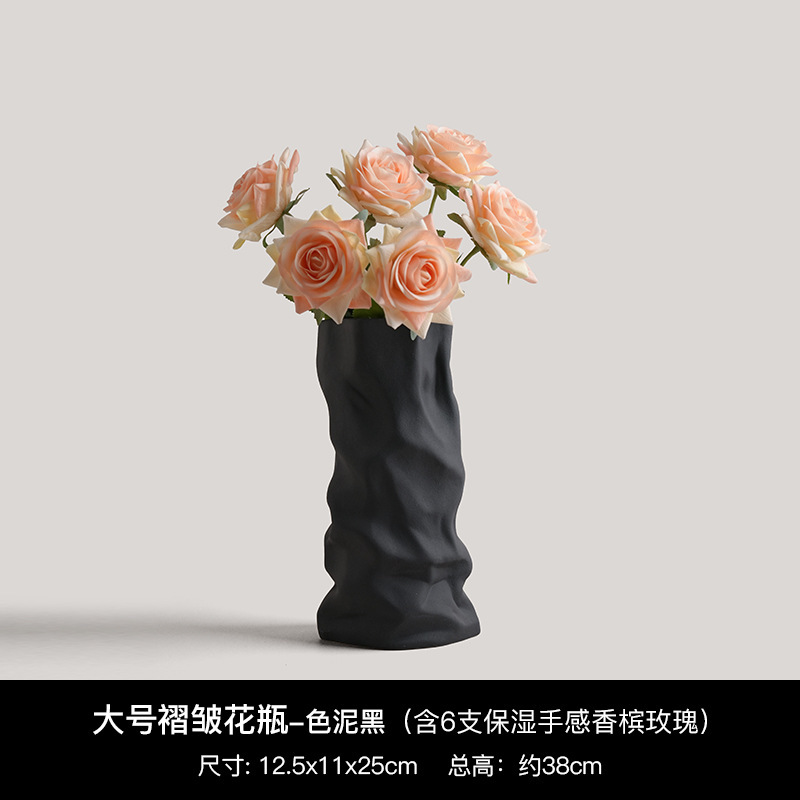 • 대형 주름 크래프트 종이 봉투 꽃병 블랙 + 싱글 보습 느낌 코너 로즈 샴페인 컬러 * 6