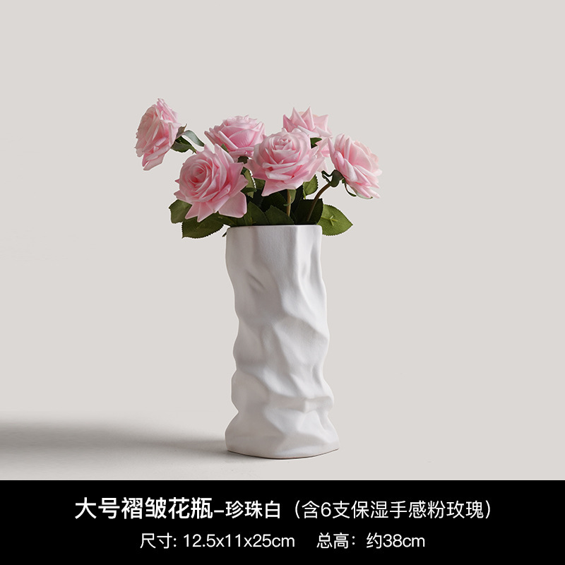 • 대형 주름 크래프트 종이 봉투 꽃병 펄 화이트 + 싱글 보습 느낌 코너 로즈 핑크 * 6