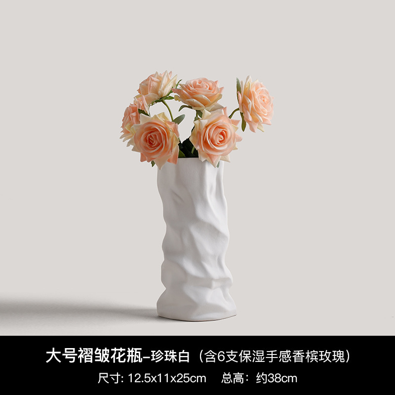 • 대형 주름 크래프트 종이 봉투 꽃병 펄 화이트 + 단일 보습 느낌 코너 로즈 샴페인 컬러 * 6