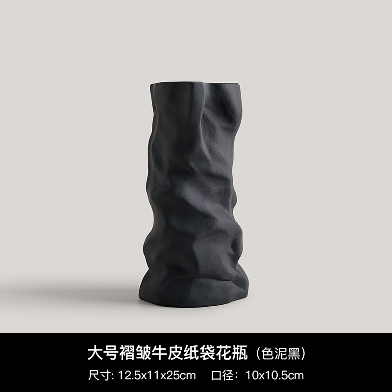 • 대형 주름 크라프트지 봉투 꽃병(검은색)