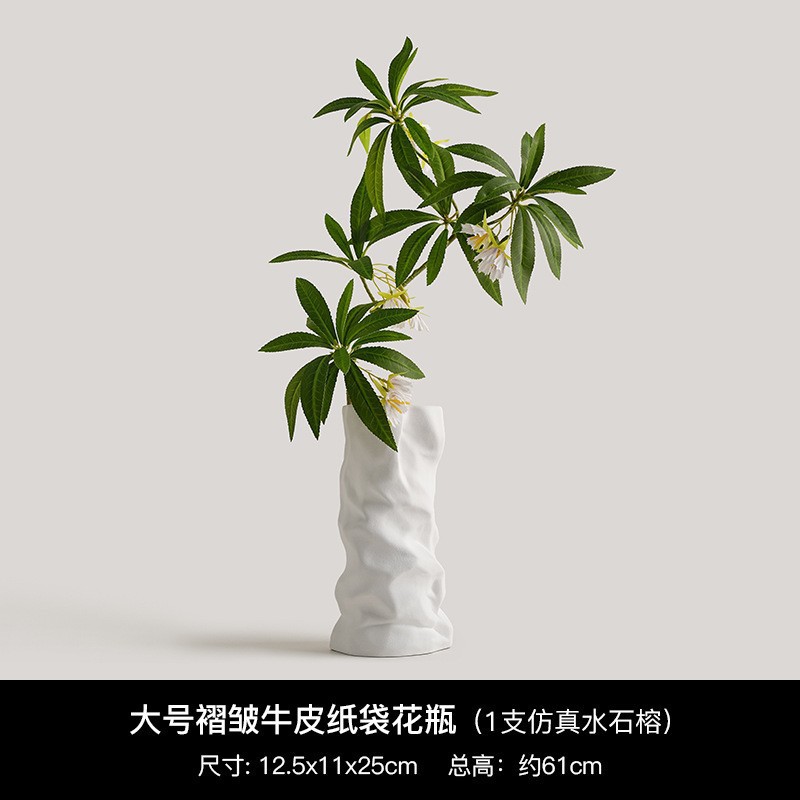 • 대형 주름 크래프트 종이 봉지 꽃병(펄 화이트) + 모조 수석 반얀 1개