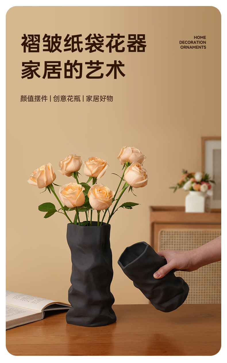 • 작은 주름 크라프트지 봉투 꽃병(검은색)