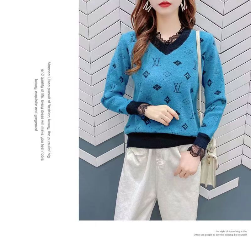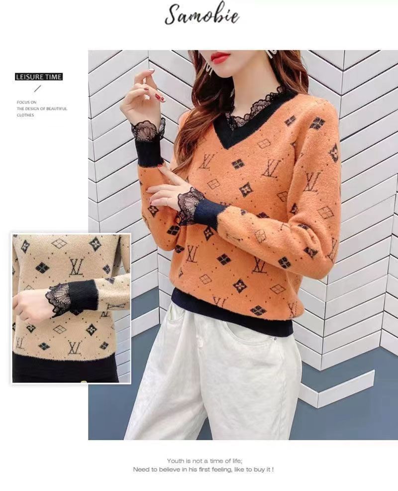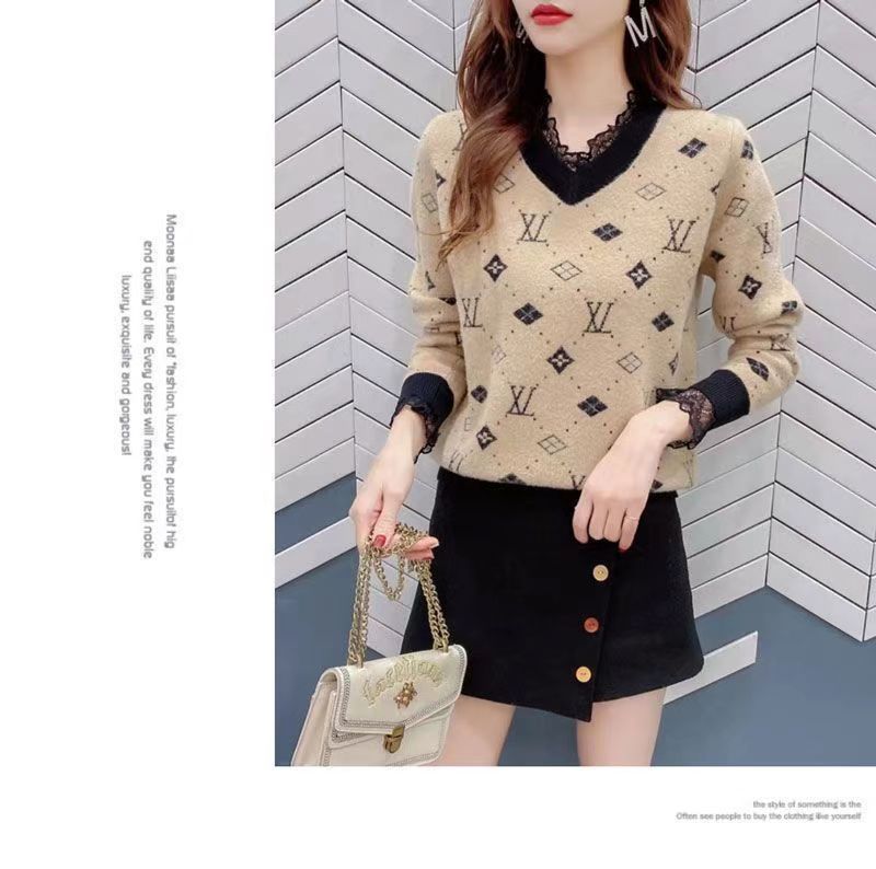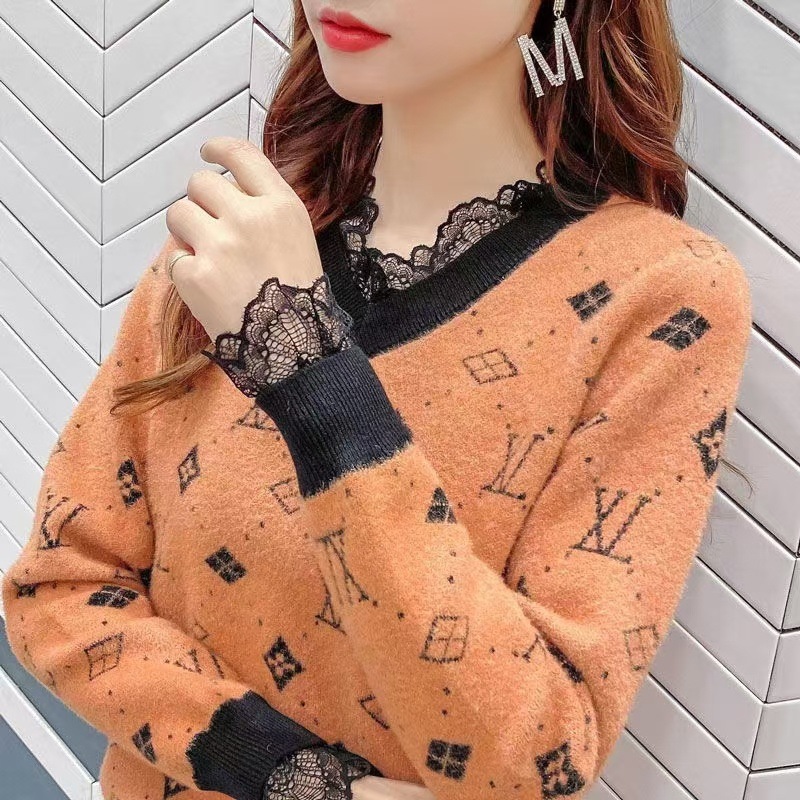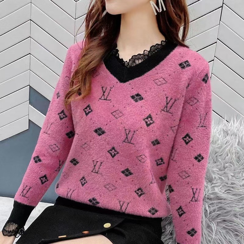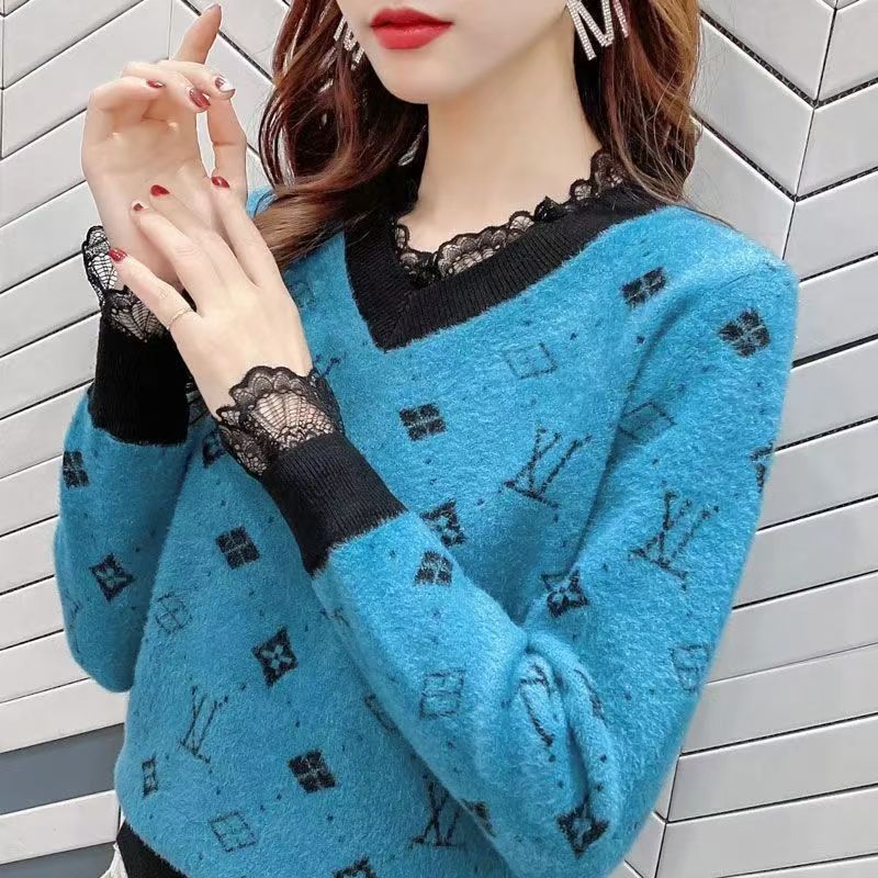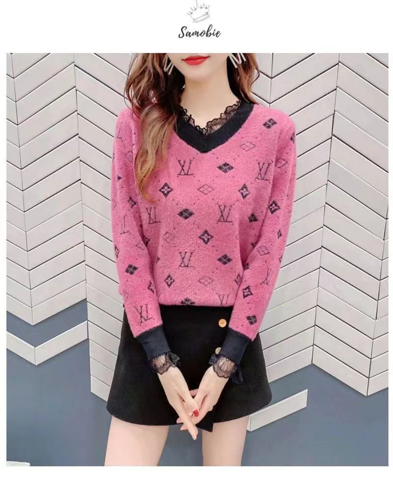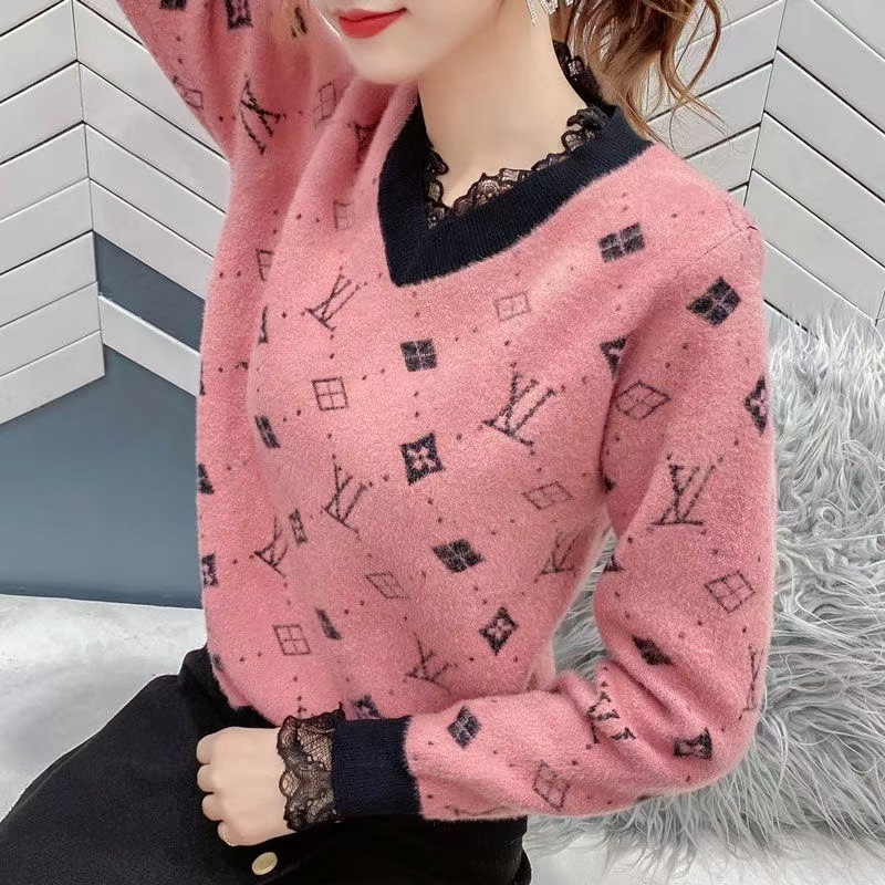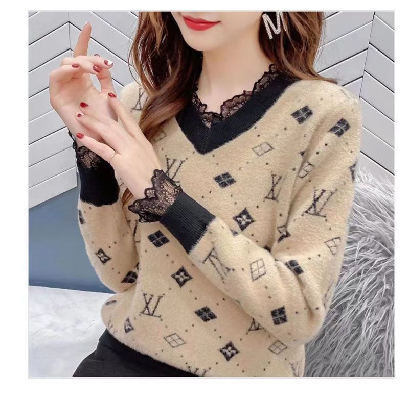 가을과 겨울 새로운 도착 밍크 벨벳 스웨터 여성의 V-Neck 레이스 느슨한 올 매치 니티드베이스 셔츠 두꺼운 탑 트렌디스토어 가기