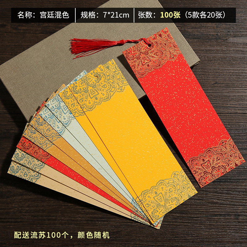 100 Zhang Wenchuang 빈 책갈피 카드 학생들을위한 술 수제 재료로 고전적인 중국 스타일 종이 북마크