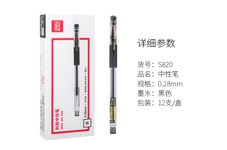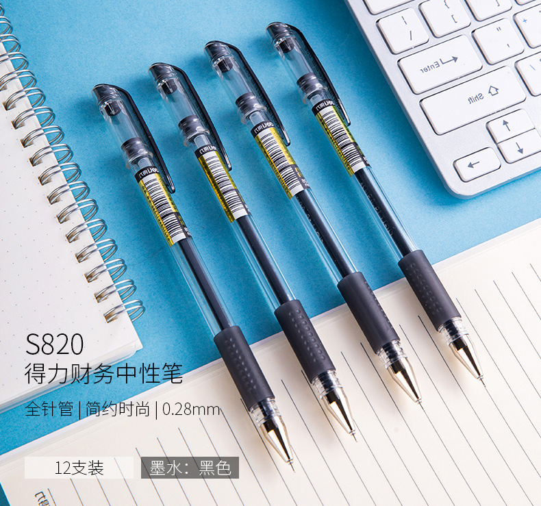 델리 젤 펜 S820 풀 바늘 0.28mm 블랙 캡 당기는 금융 사무실 사인 펜 세대