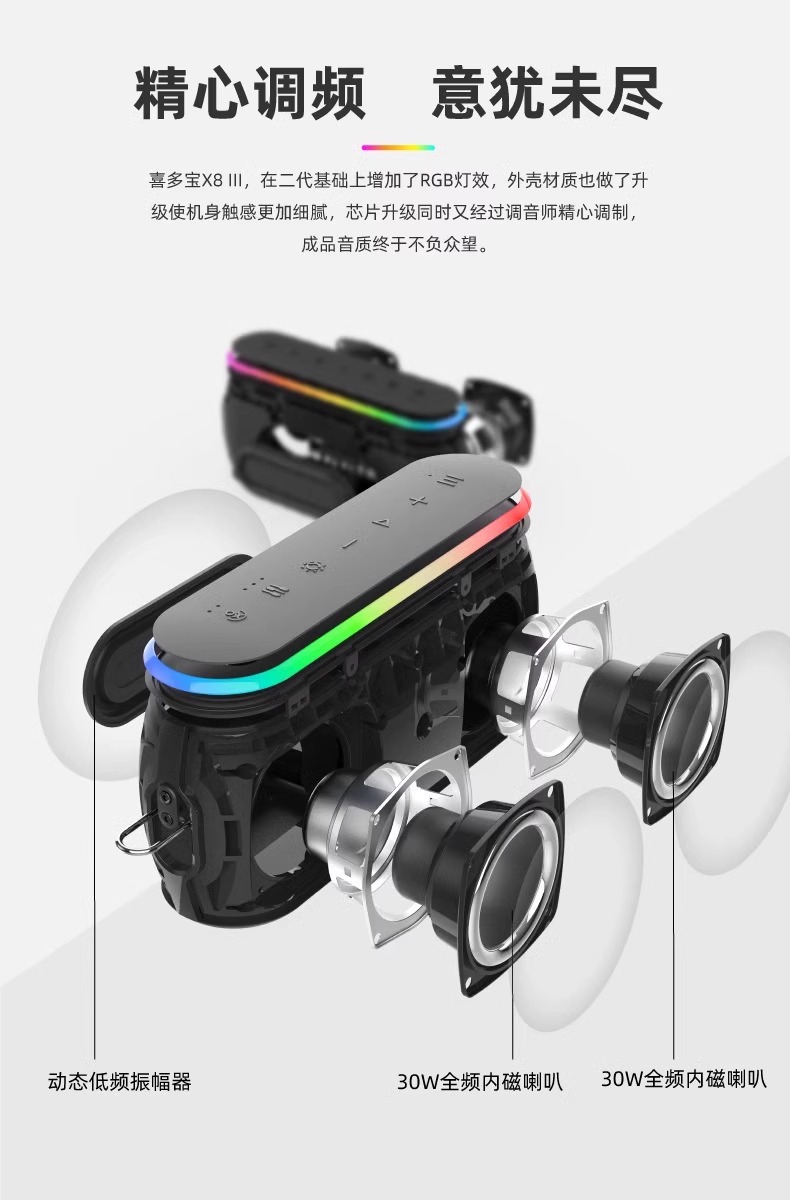 Xdobo 새로운 X8 3 세대 블루투스 스피커 60W 높은 전원 홈 오디오 휴대용 소형 서브 우퍼