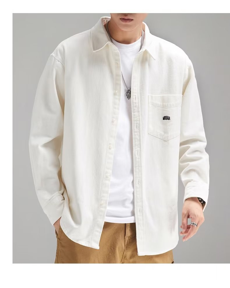 일본 셔츠 남자의 고급 느낌 푹신한 잘생긴 봄과 가을 빈티지 캐주얼 샌딩 긴팔 셔츠 작업복 남성용 코트스토어 가기