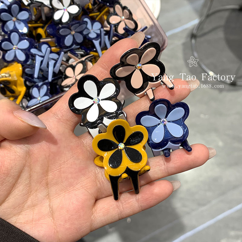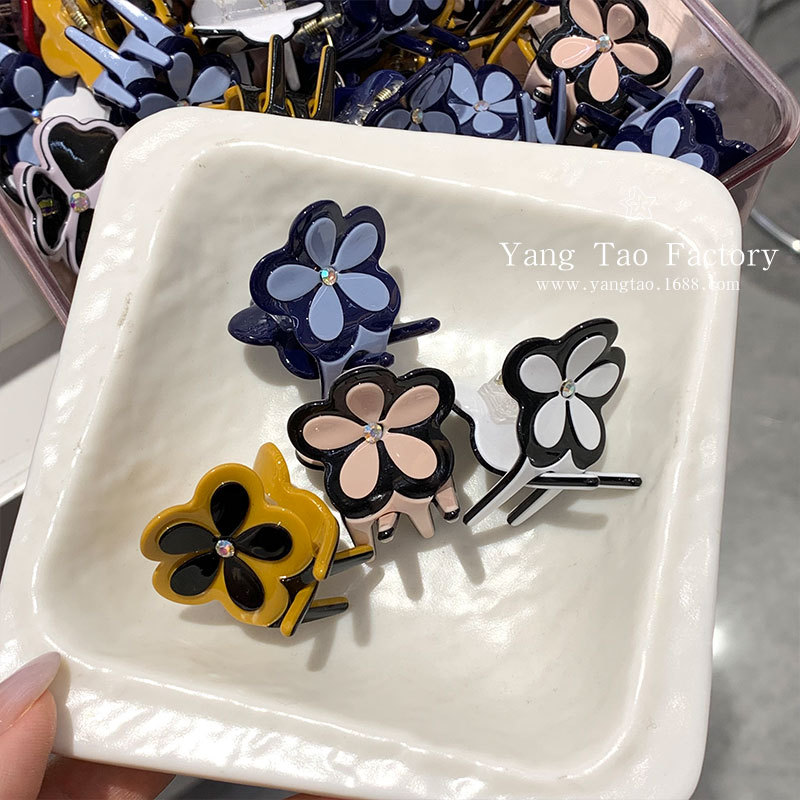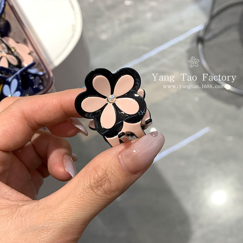 새로운 2025 크로스 보더 인 스타일 아세트산 진주 흑백 꽃 아세트산 공주 헤드 사이드 앞머리 그립 클립스토어 가기