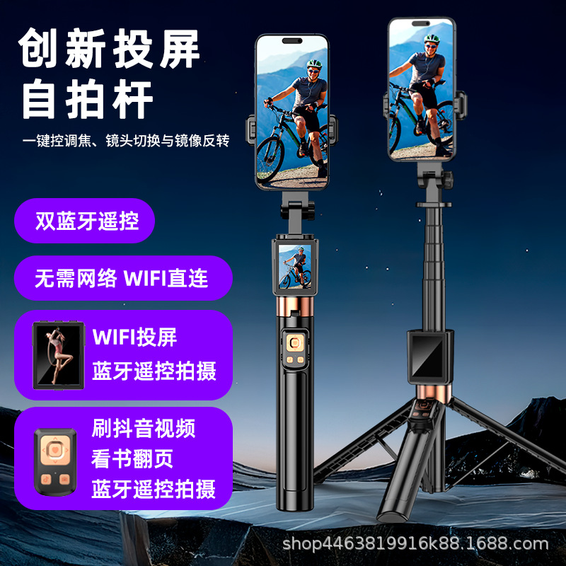 2025 새로운 화면 셀카 스틱 와이파이 스크린 듀얼 블루투스 원격 제어 합금 텔레스코픽 로드 촬영 각도 유연한스토어 가기