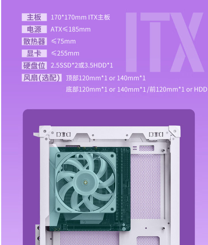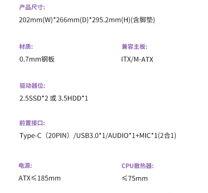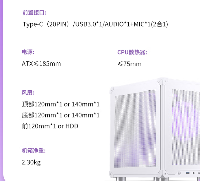 乔思伯(JONSBO)C6 MATX机箱(四面MESH板/3风扇位/前置Type-c/ATX电源/≤75mm散热器/200-255mm显卡)