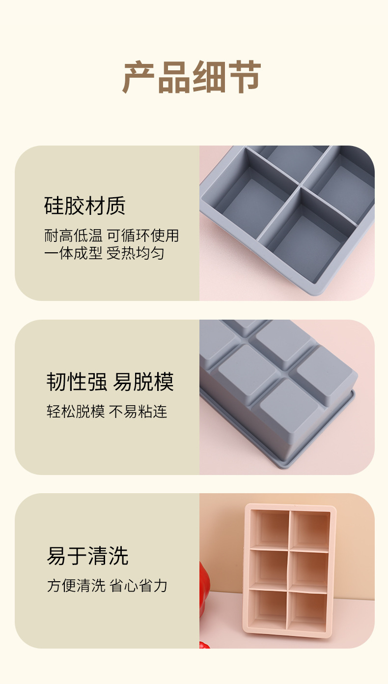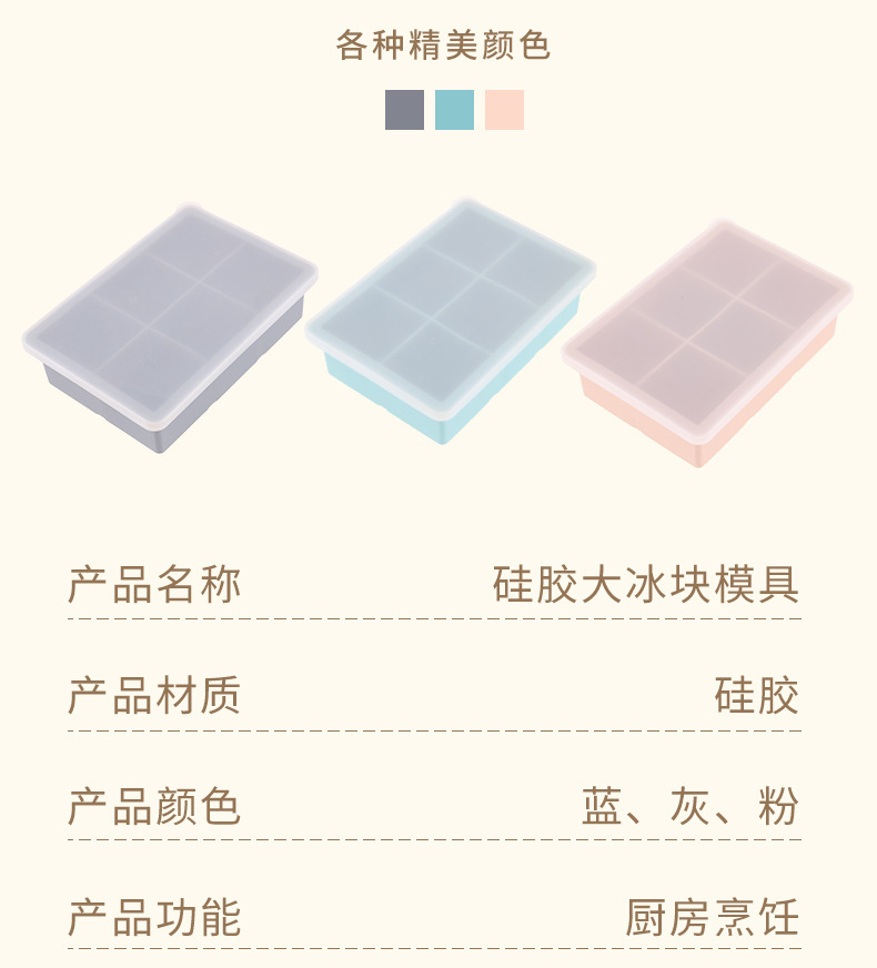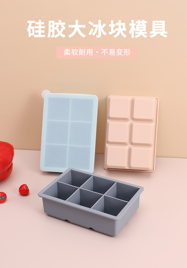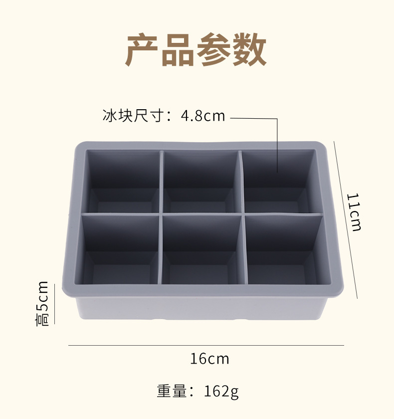 실리콘 아이스 큐브 금형 대형 큐브 아이스 박스 식품 학년 홈 메이드 아이스 큐브 6 큐브 스퀘어 아이스 큐브 위스키