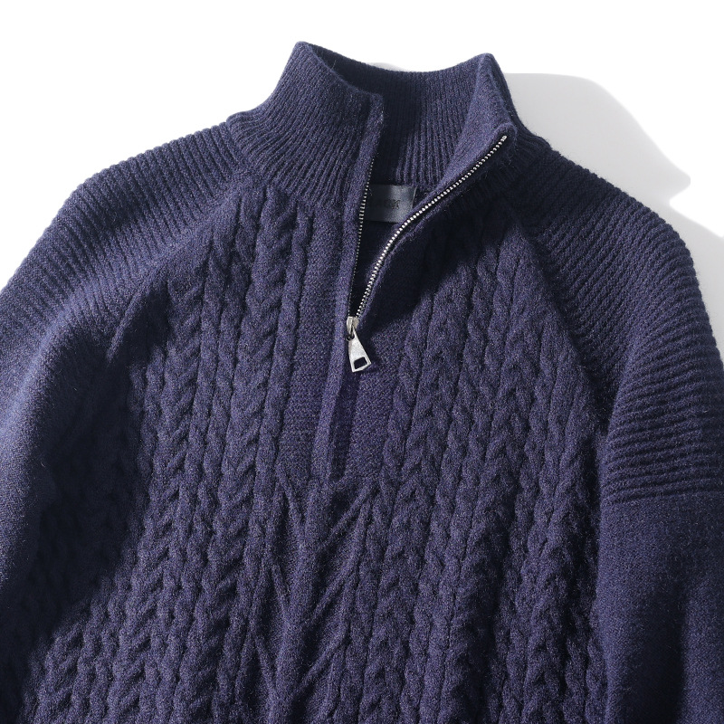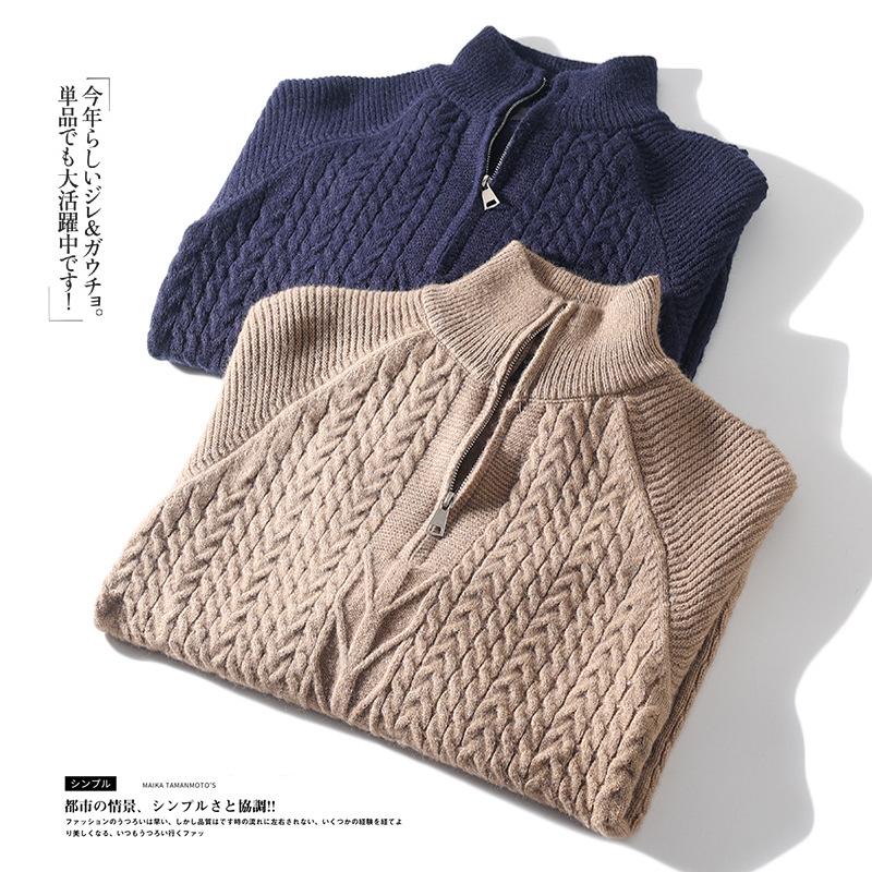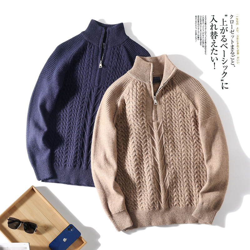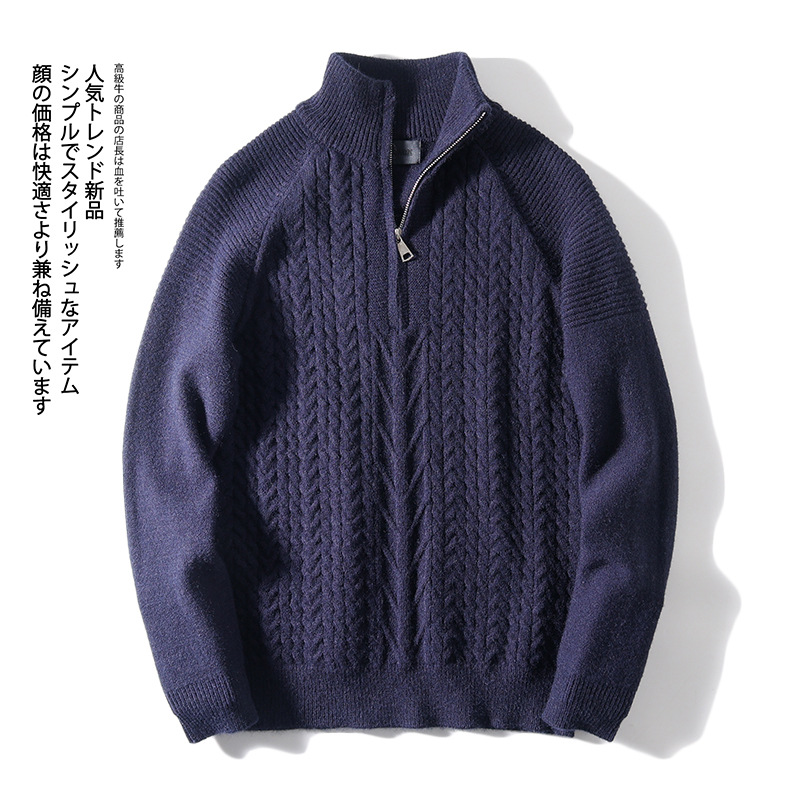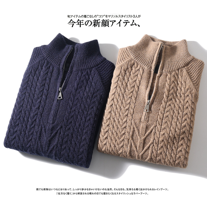 남자 하프 지퍼 트위스트 풀오버 소프트 니트 스웨터 루즈 트위스트 스웨터 따뜻한 가을과 겨울 뉴스토어 가기