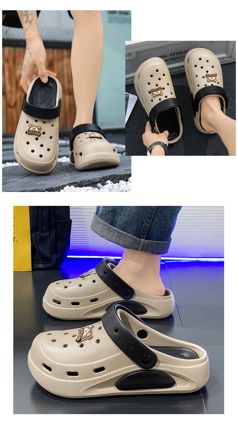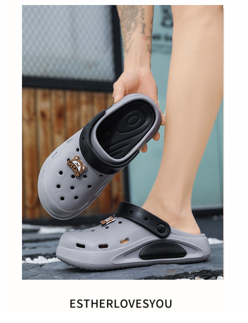 스탬핑 슬리퍼 남성 여름 야외 해변 해변 스포츠 샌들 십대 야외 운전 이중 사용 구멍 신발