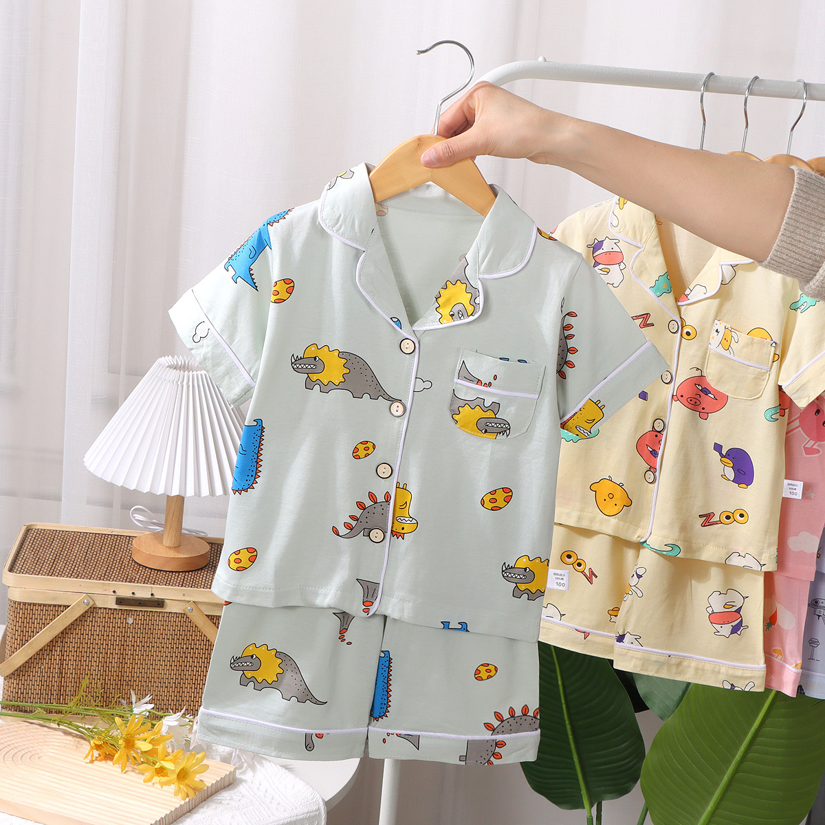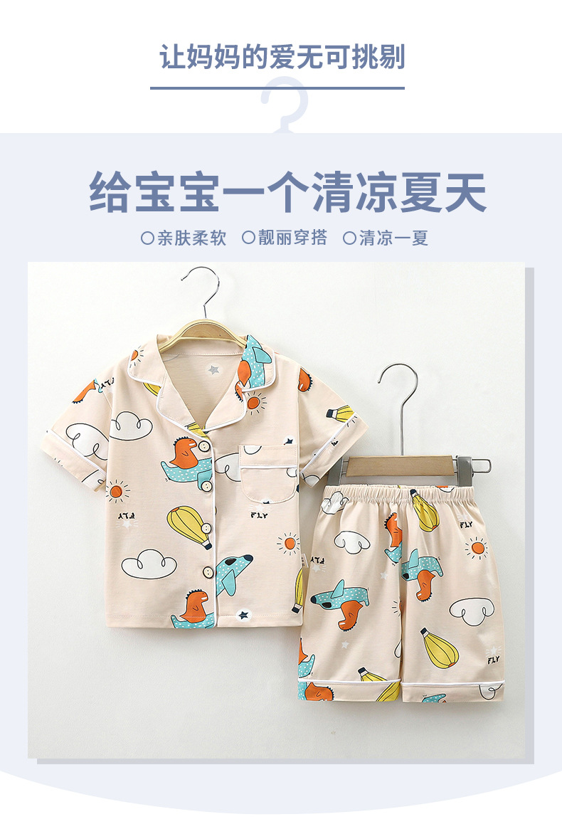 2025년 신형 아동복 세트, 중년 아동용 얇은 면 잠옷, 초등학생 에어컨 의류, 아동용 반팔 양복스토어 가기