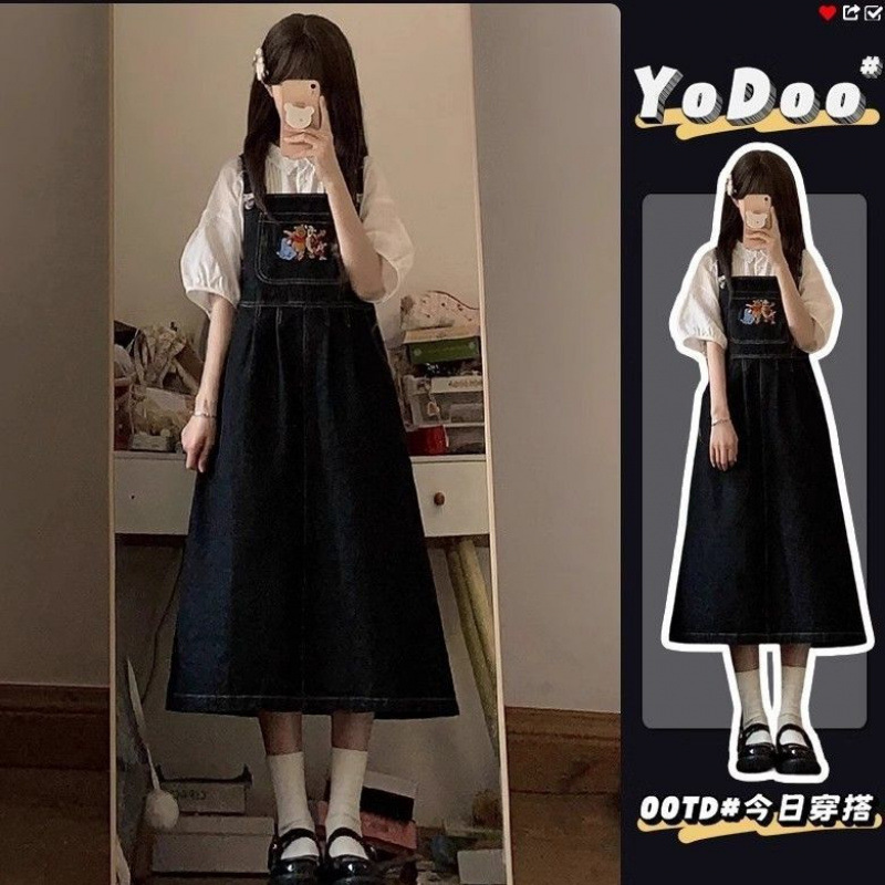 소금 스타일 빈티지 자수 데님 스트브 원피스 여성의 여름 새로운 중간 길이 느슨한 스트레이트 스타일 얇은 스커트스토어 가기