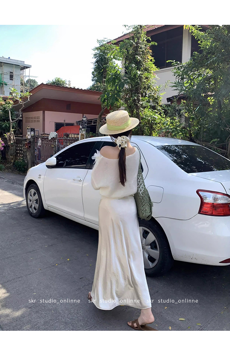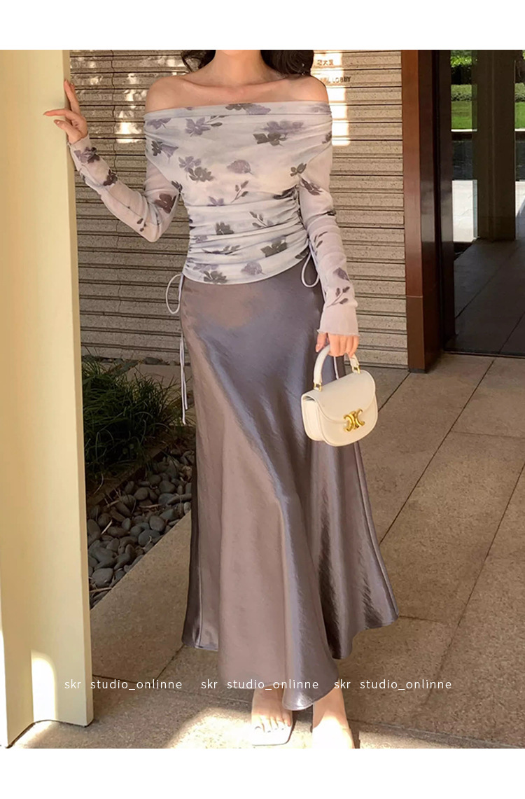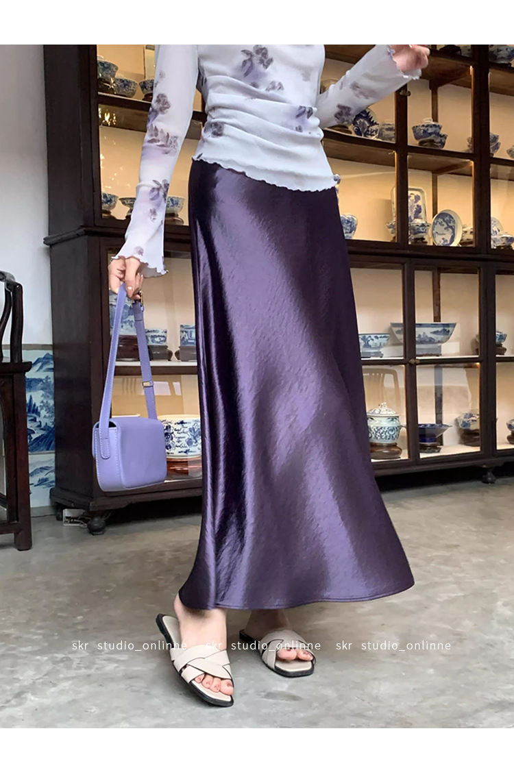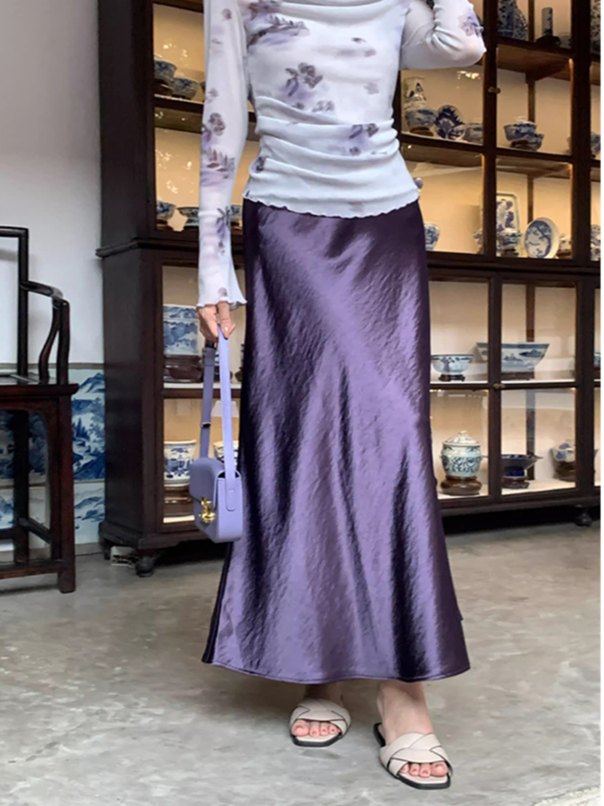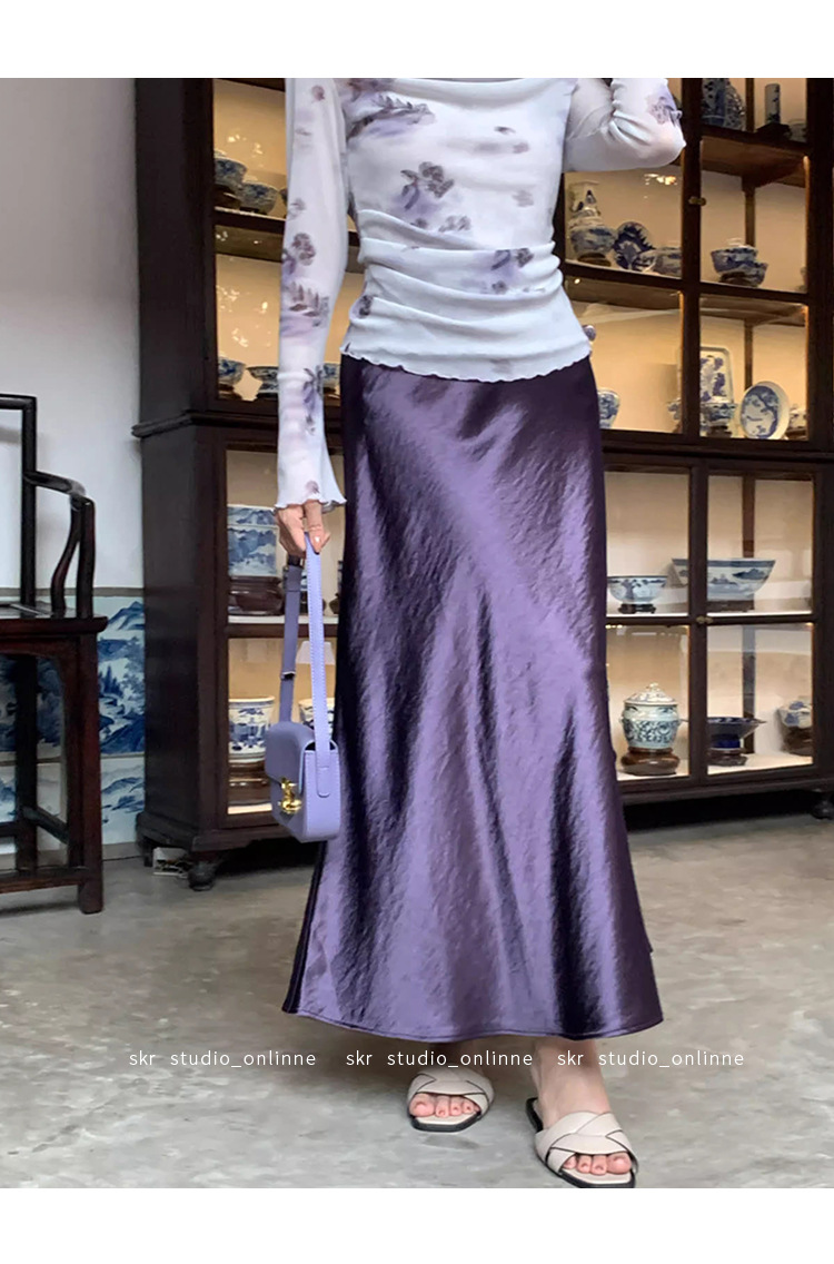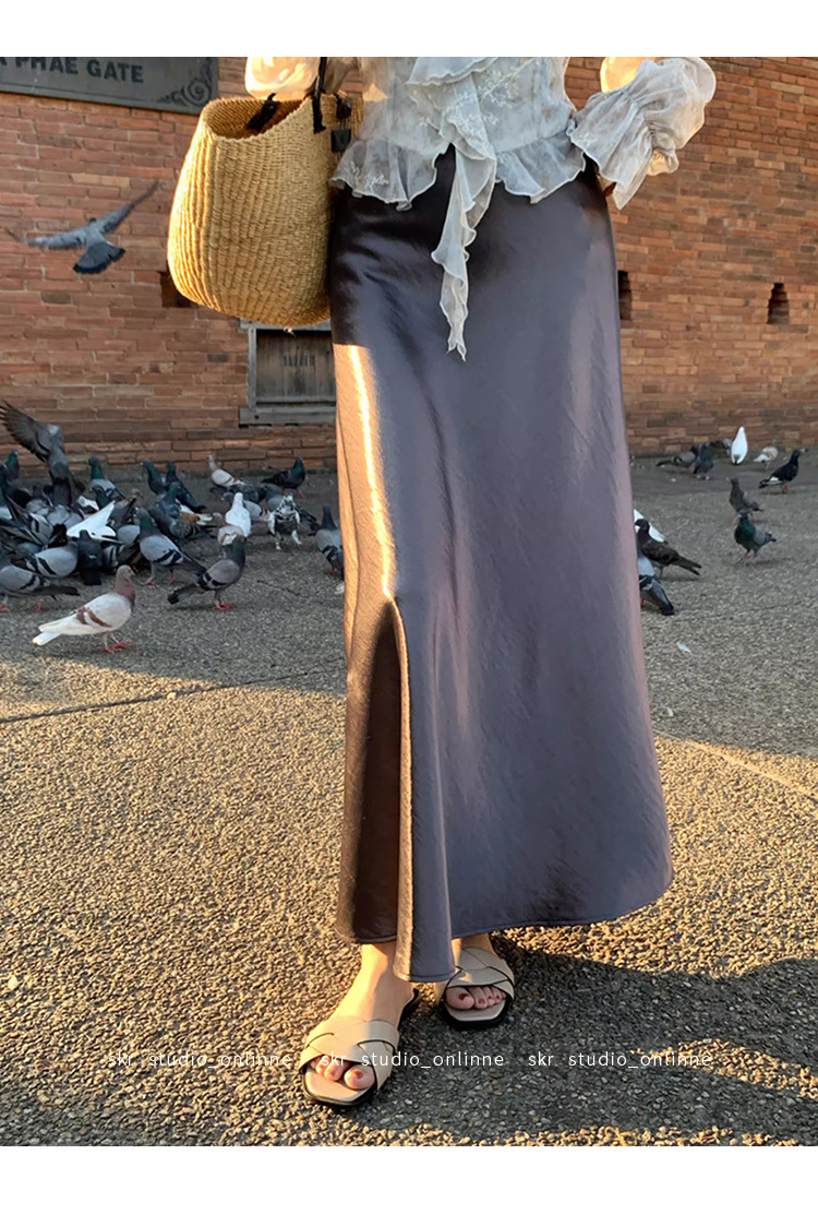 프랑스 스타일 질감 시폰 Acetic Acid Satin 스커트 여성 2025 년 여름 새로운 도착 Elaptic 허리 엉덩이 피쉬 테일 롱 스커트