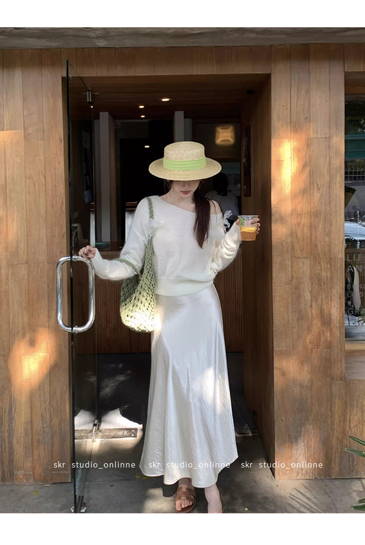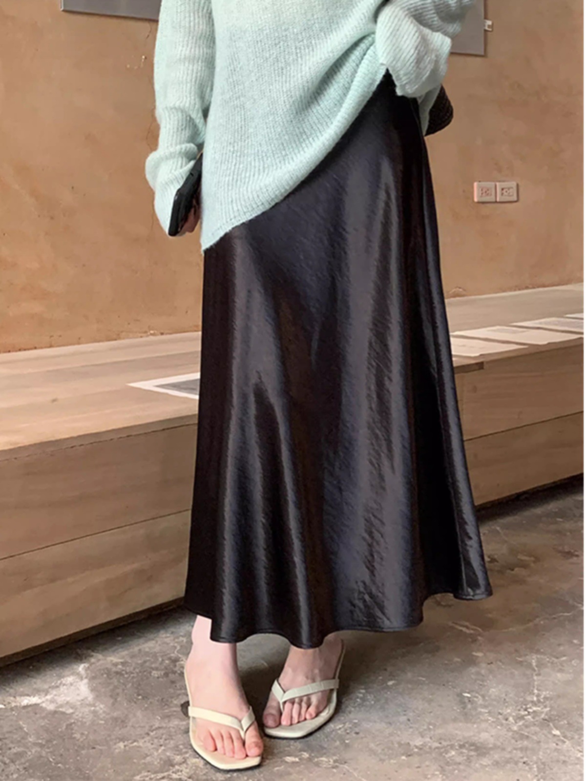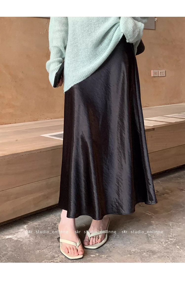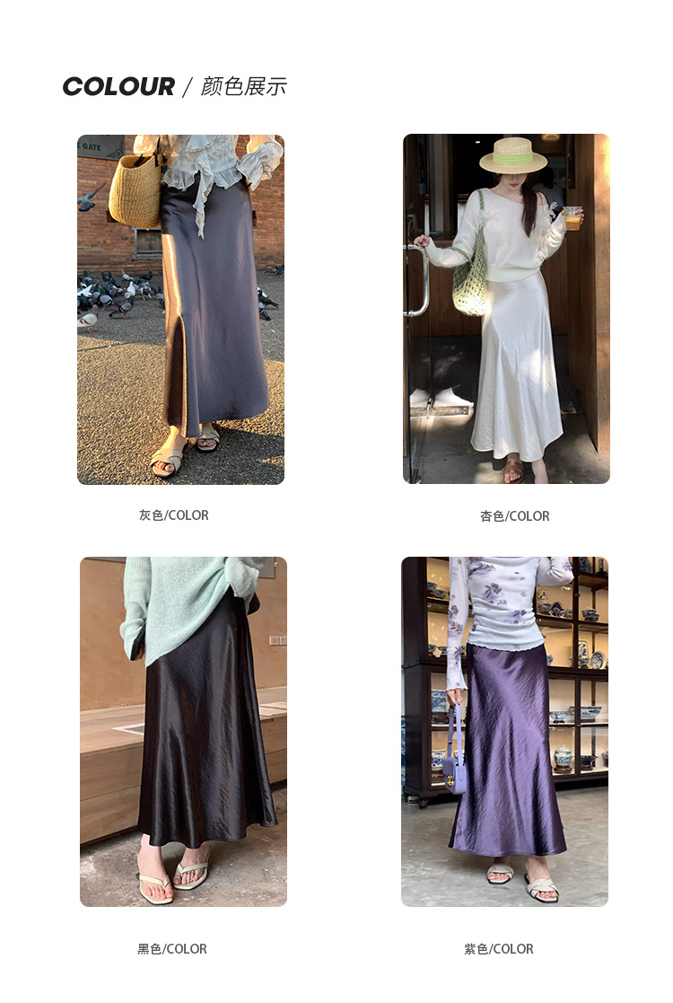 法式肌理感丝滑醋酸缎面半身裙女春夏松紧腰显瘦包臀鱼尾长裙女