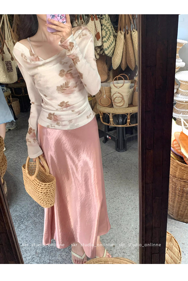 프랑스 스타일 질감 시폰 Acetic Acid Satin 스커트 여성 2025 년 여름 새로운 도착 Elaptic 허리 엉덩이 피쉬 테일 롱 스커트스토어 가기