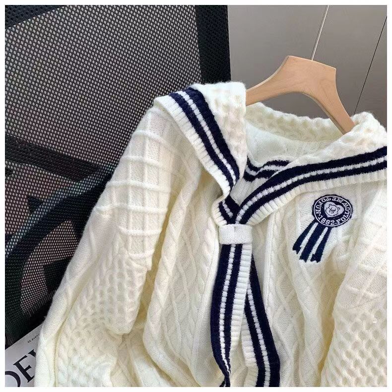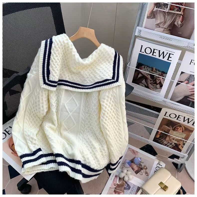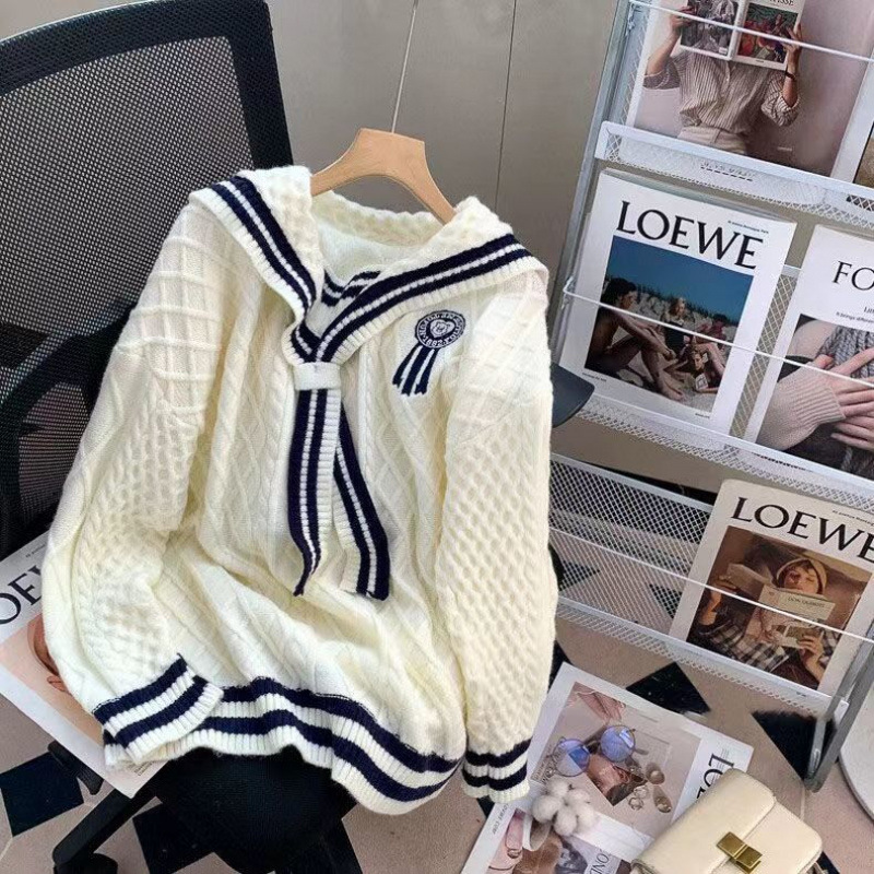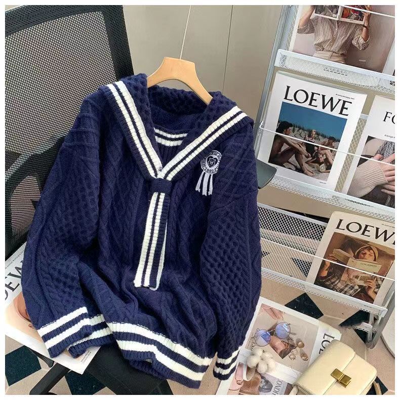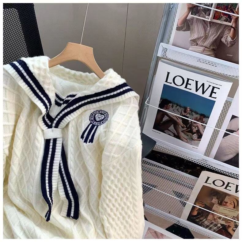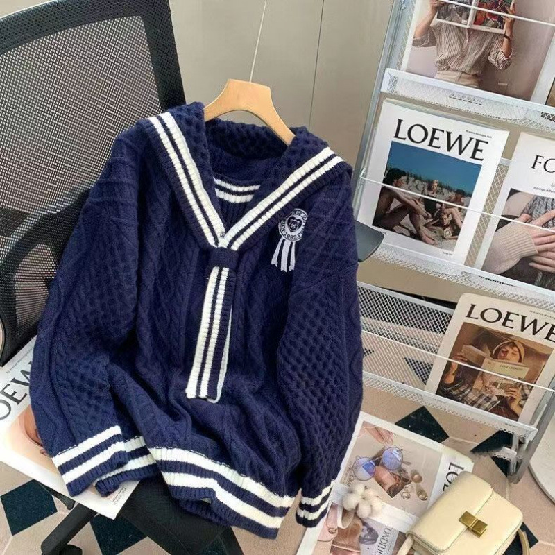 올해 인기 폭발 스웨터 여성의 2025 가을과 겨울 새로운 학술 스타일 느슨한 해군 칼라 스웨터 여성의 외국 스타일스토어 가기