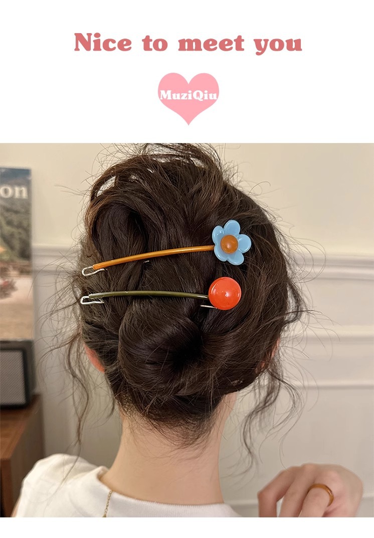 한국 콘트라스트 컬러 플로렛 헤어핀 어린이 고감도 등 머리 우아한 머리 2025 새로운스토어 가기