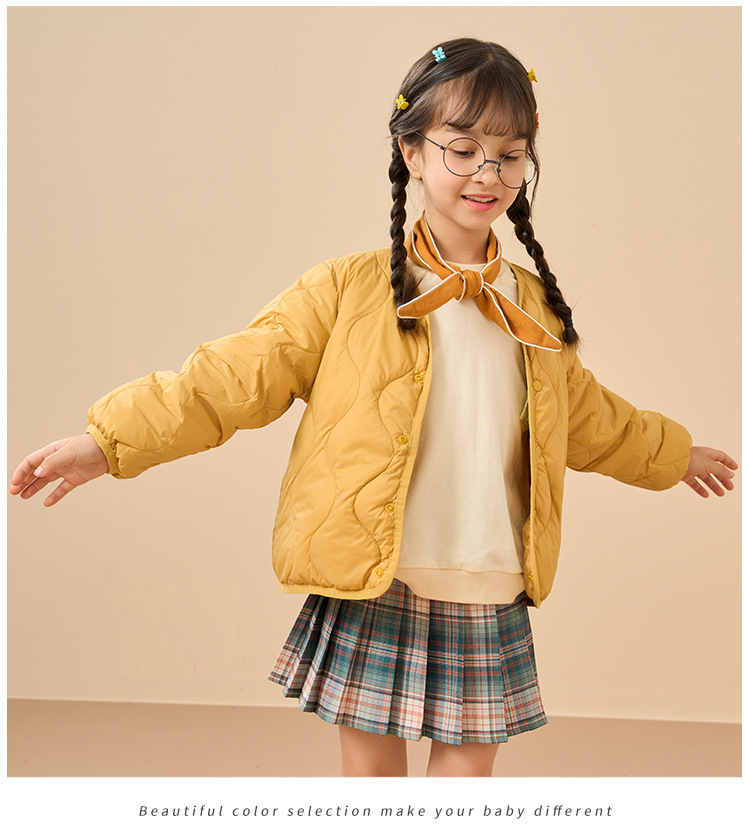 어린이용 다운 실크 안감 짧은 스타일 남아 여아 아기 다운 실크 의류 중소 아동복 가을 겨울 학교 착용