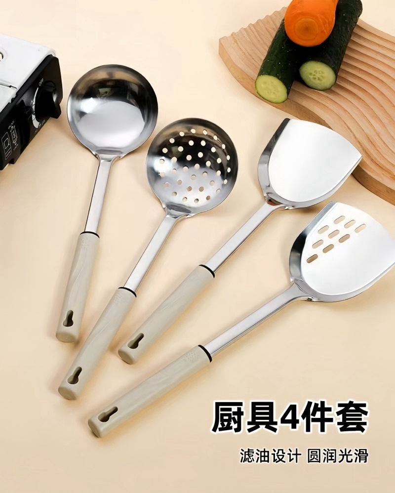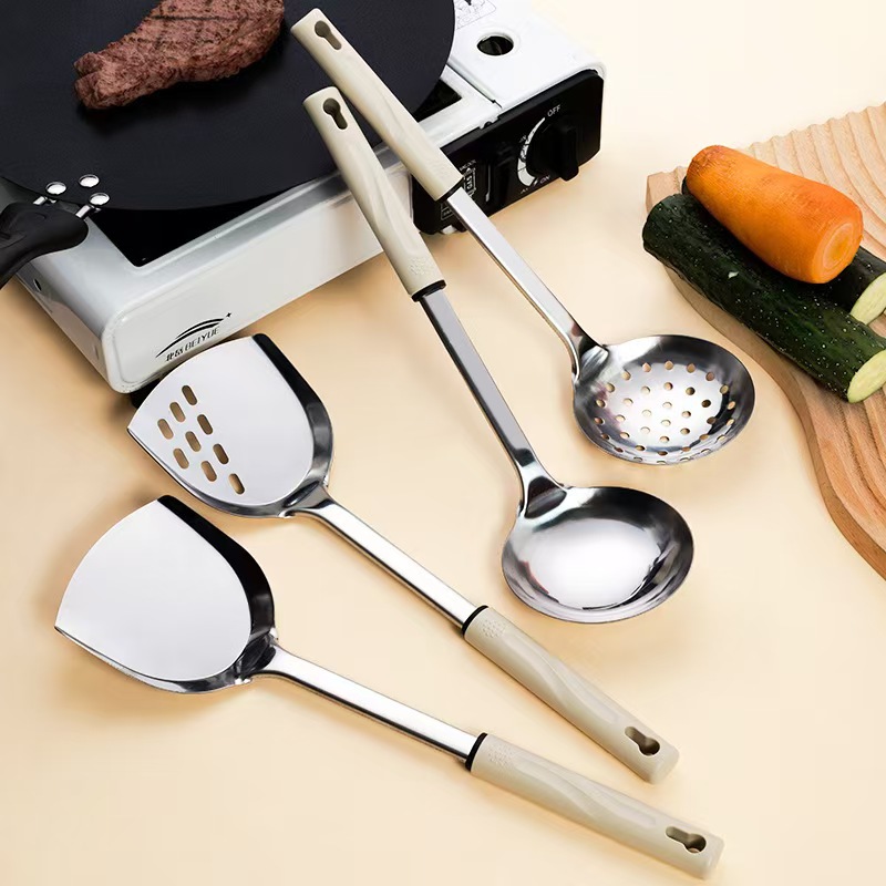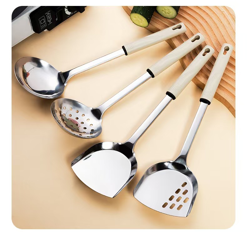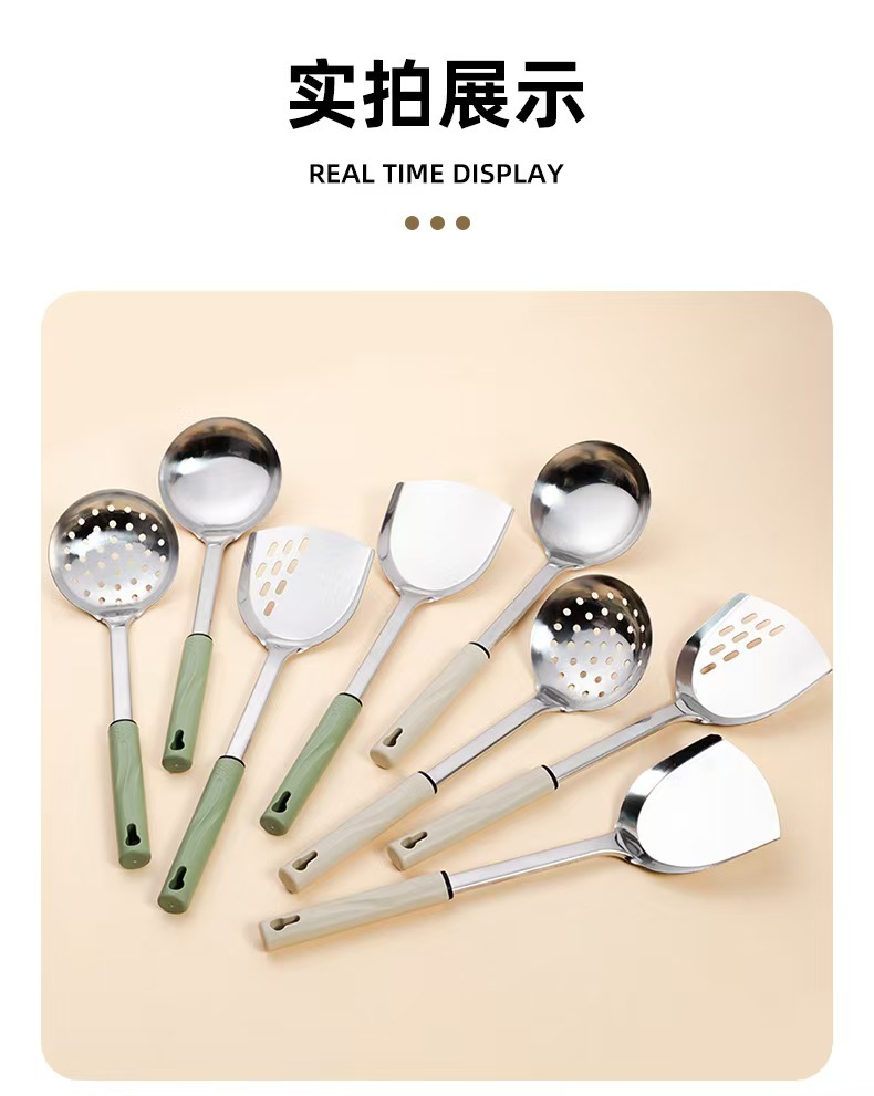 스테인레스 스틸 주걱 요리 요리사 수프 숟가락 소쿠리 주방 요리 도구 안티 scald 가정용 고온 저항 숟가락 주걱 전체 세트