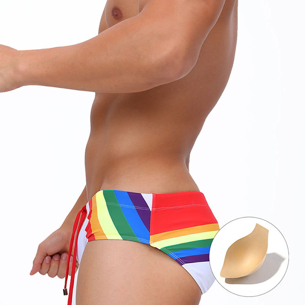 UXH 무지개 스포츠 대외 무역 새로운 도매 삼각형 수영 트렁크 컵과 섹시 클로즈핏 빠른 건조 스포츠 삼각형 남자스토어 가기
